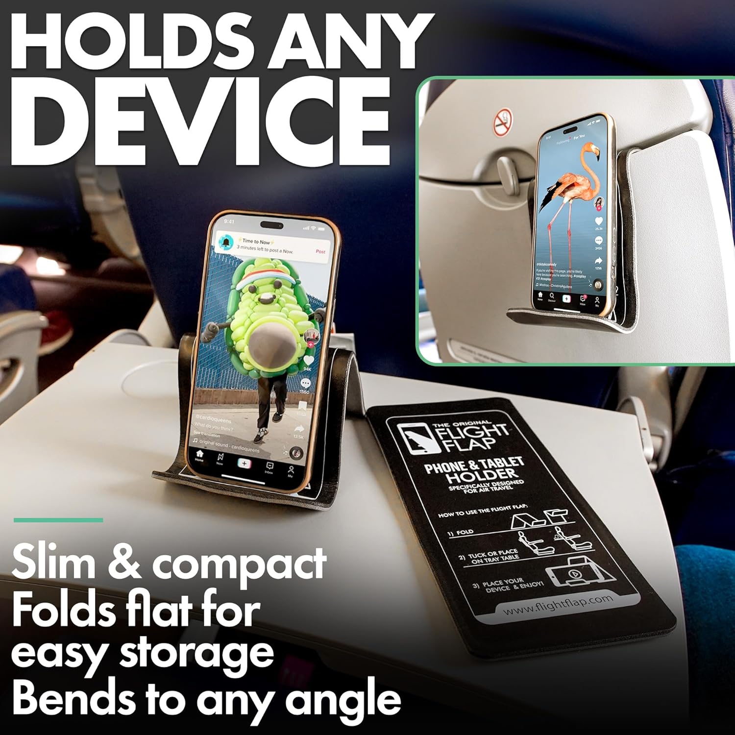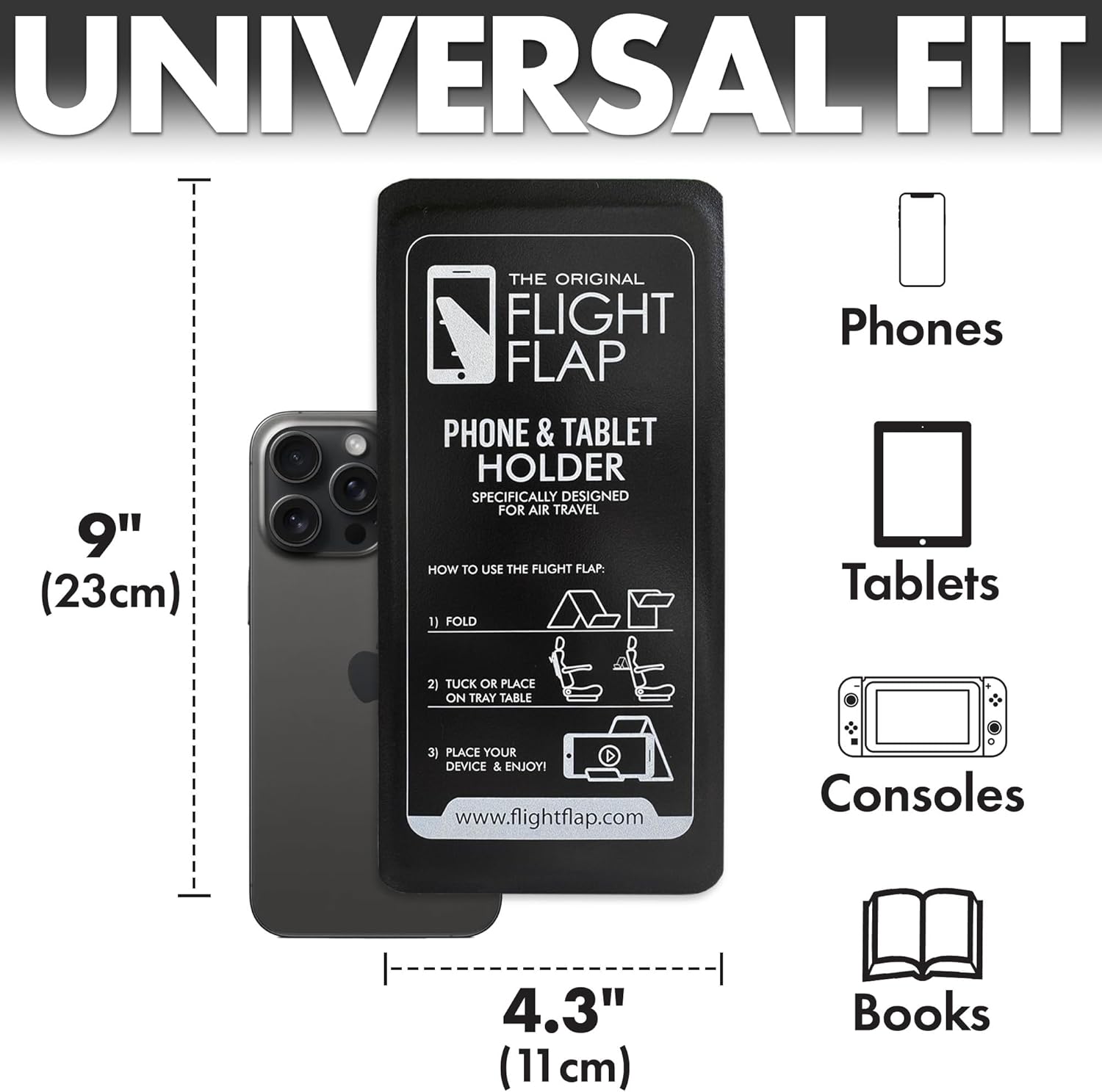 - FOR PHONES, TABLETS, BOOKS β The FLIGHT FLAP plane phone holder accommodates a wide range of phones (iPhone, Android), small tablets and e-readers (Kindle), handheld gaming consoles (Nintendo Switch) or your favorite books.