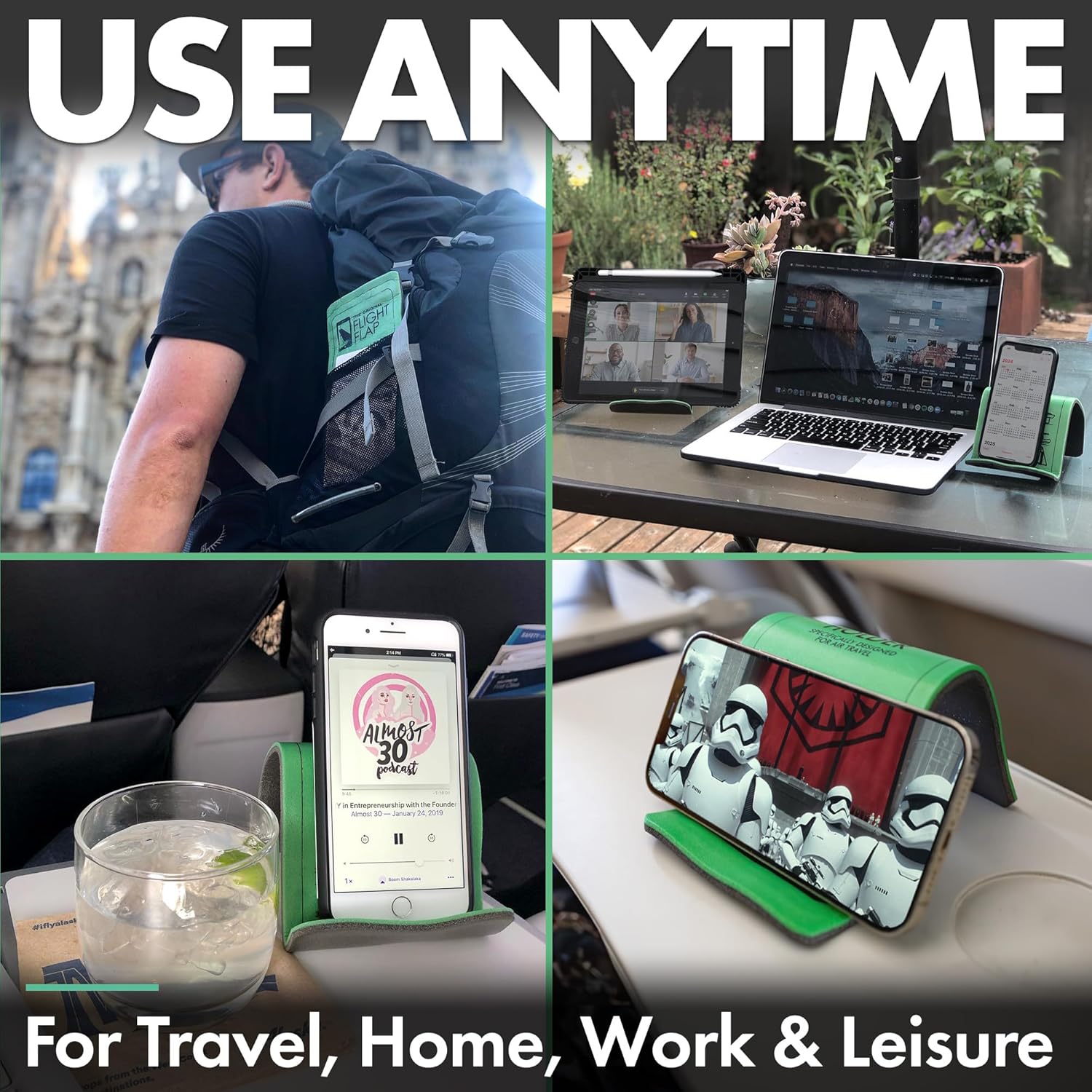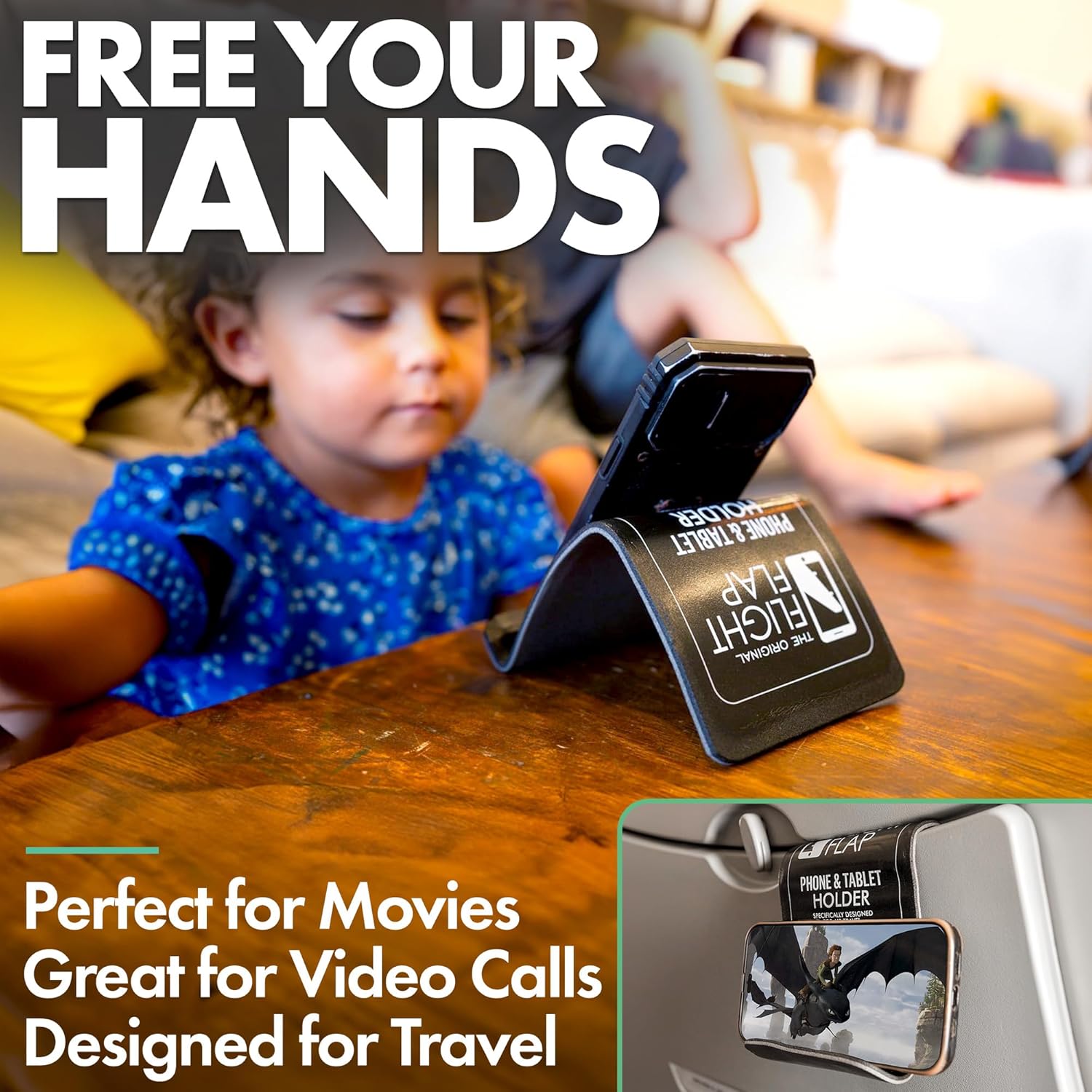 - USE FOR TRAVEL, WORK & LEISURE β Great for watching movies, entertaining kids, streaming workouts, hosting a zoom video call, or cooking with recipes on your phone. Use the FLIGHT FLAP phone stand anywhere to grip your device and view your content comfortably. Attaches to most airline seat backs and tray tables. During car rides, attach behind the headrest and stream movies for kids. Properly positions your phone to host zoom meetings.