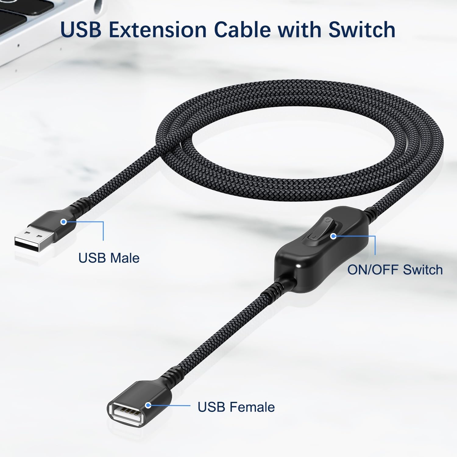 - Convenient Switch Function: The built-in switch on the cable makes life more convenient. With a simple press of the switch, you can easily control USB-powered devices such as small fans, LED desk lamps, bedside lights, and various computer peripherals. No more hassle of repeatedly plugging and unplugging devices.
