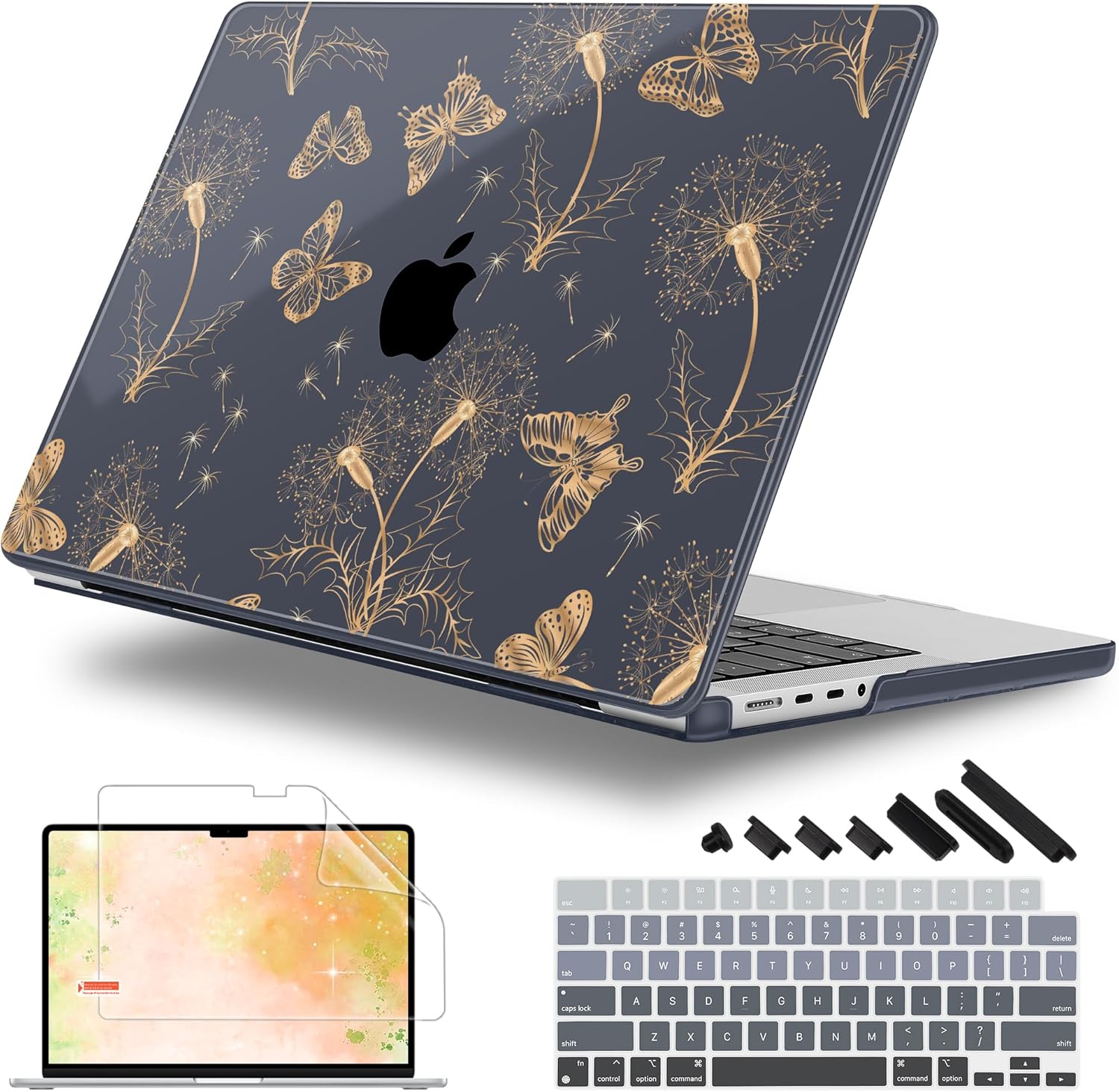 for MacBook Pro 16 inch Case 2021 2022 2023 2024 Release A3186 A3403 M4 A2991 M3 A2780 M2 A2485 M1 Pro/Max, Hard Shell Case with Screen Protector & Keyboard Cover, Butterflies