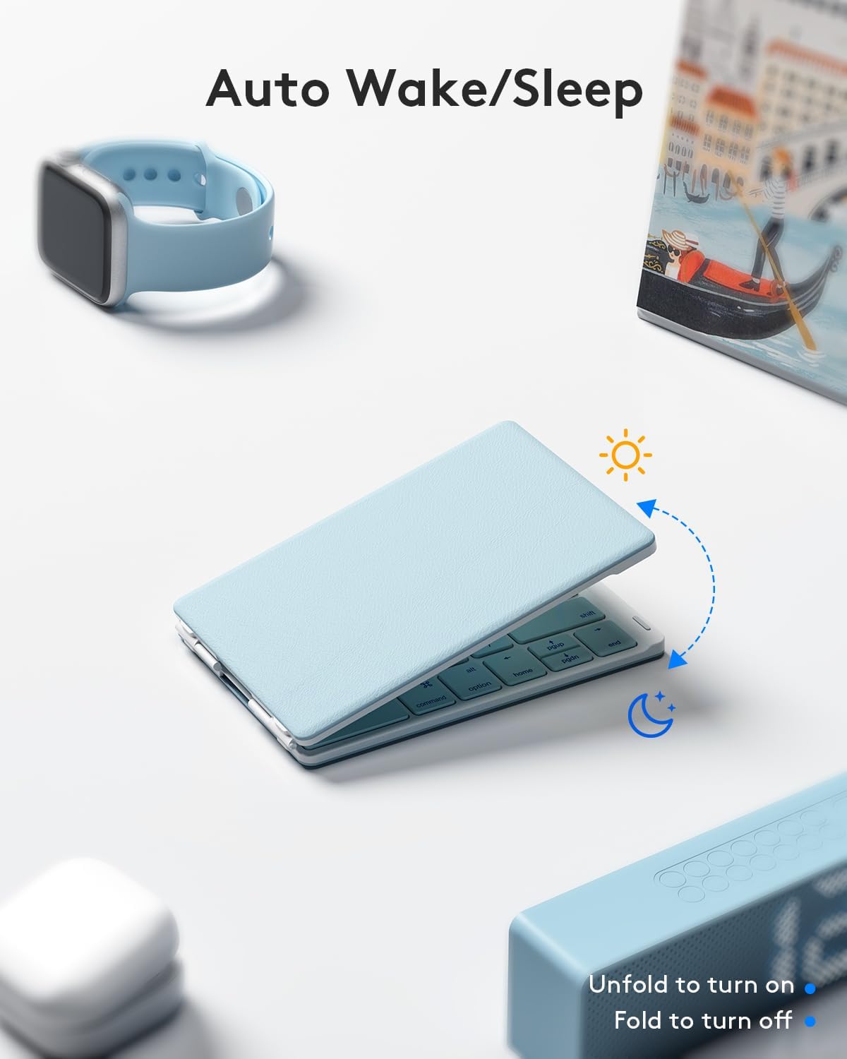 - 【Pocket-Size & Easy to Use】 Only 5.3-ounce palm-sized keyboard can be folded into your pocket or backpack to carry around. Just press the CONNECT button to quickly pair with your devices. Automatic on/off and reconnection design makes operation more convenient. With a Samsers folding keyboard, you can start to write down your ideas anywhere quickly!