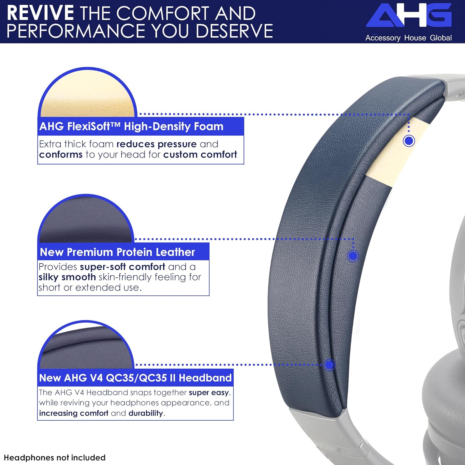 - The Performance You Deserve – Transform your audio experience with the V4 qc35 ii headband. Meticulously crafted with a secure clip-on fit, the V4 AHG Accessory House Global quietcomfort 35 headband cushion is made with premium, durable materials to restore your QC 35 ii headphones and ensure long-lasting performance, so you can focus on what matters!