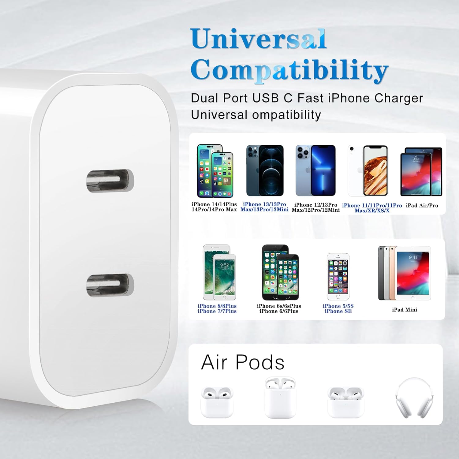 - ăDual Port USB C iPhone Charger Wide CompatibilityăThis Dual USB C Charger Block âcompatible With iPhone 14/iPhone 14 Plus/iPhone 14 Pro/iPhone 14 ProMax/iPhone 13/iPhone 13 MiNi/iPhone 13 Pro/iPhone 13 ProMax/iPhone 12/iPhone 12 MiNi/iPhone 12 Pro/iPhone 12 ProMax/iPhone 11 ProMax/iPhone 11 Pro/iPhone 11/iPhone XS/iPhone XSMax/iPhone XR/iPhone X/iPhone 8Plus/8/iPhone 7/7Plus/6s/6sPlus/6/6Plus/SE/5s/5/5c,iPad/iPad MiNi,AirPods and More Devices.