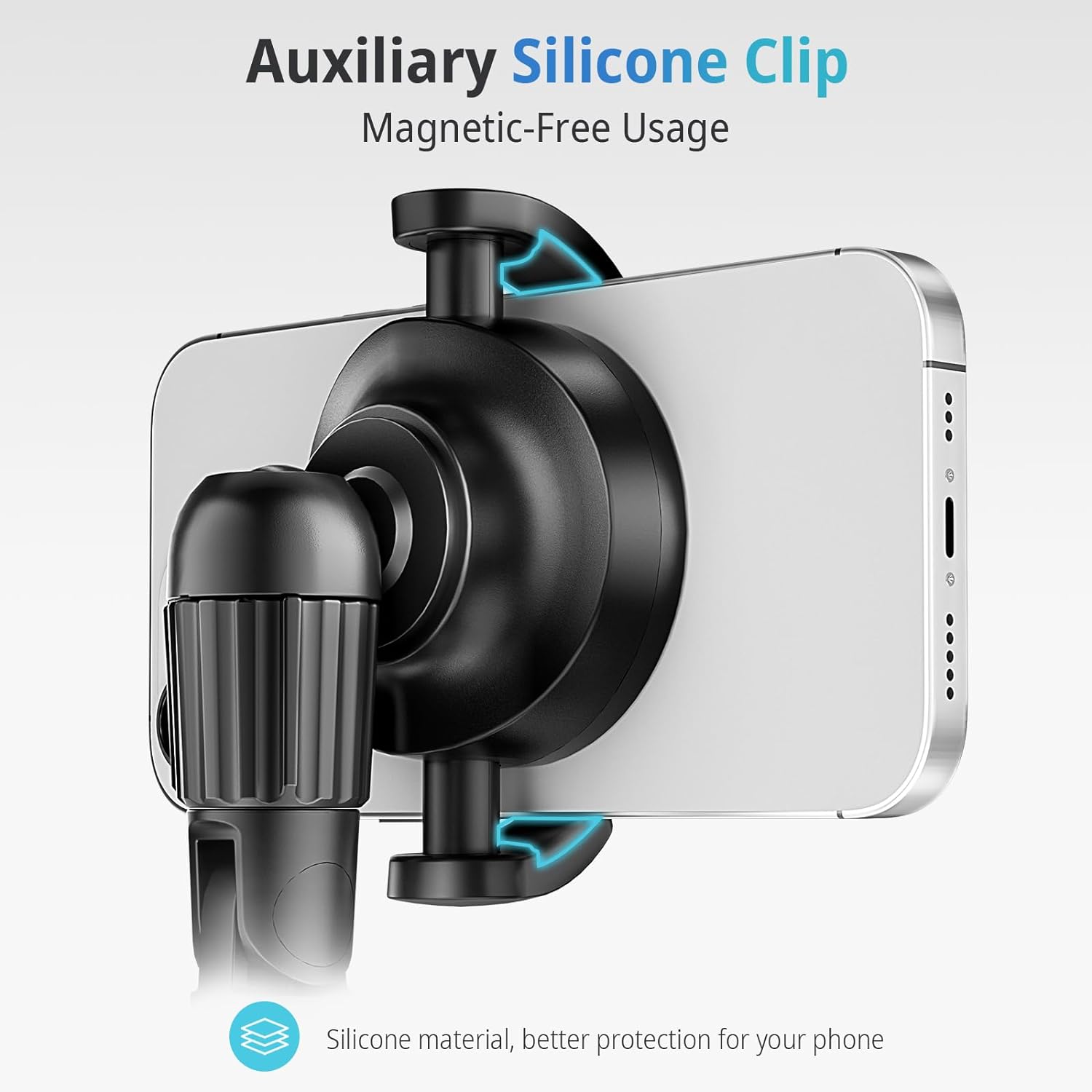 - ăAuxiliary Silicone ClipăIt Seamlessly Attaches to iPhone 15/15 Pro/15 Pro Max, iPhone 14/14 Pro/14 Pro Max, iPhone 13/12 Series Phones, or MagSafe Cases. For Non-magnetic Models, it Pairs Effortlessly with a Silicone Clip, Ensuring Your Device Remains Unharmed While Providing Enhanced Protection for Your Phone.