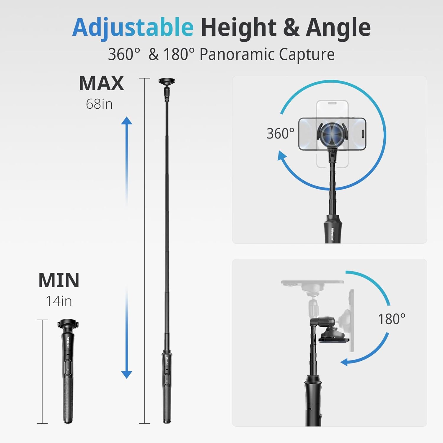 - ă180° & 360° RotationăA Flexible Combination of 180°Neck Rotation and 360°Head Rotation Allows You to Capture Stunning Photos and Images from Broader Angles and Higher Positions. Whether it's Travel Adventures, Gatherings, Weddings, or Beautiful Outdoor Landscapes, You Can Easily Achieve it.