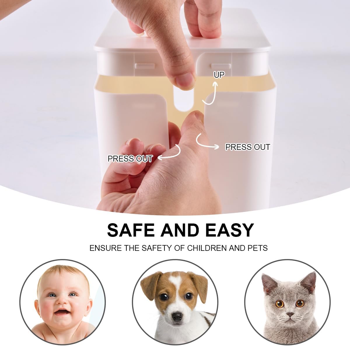 - [STYLISH & SAFE] With a stylish white plastic lid of fine design, not only will it blend neatly with any decor and look stunning, but also protect your kids or pets away from electronics danger