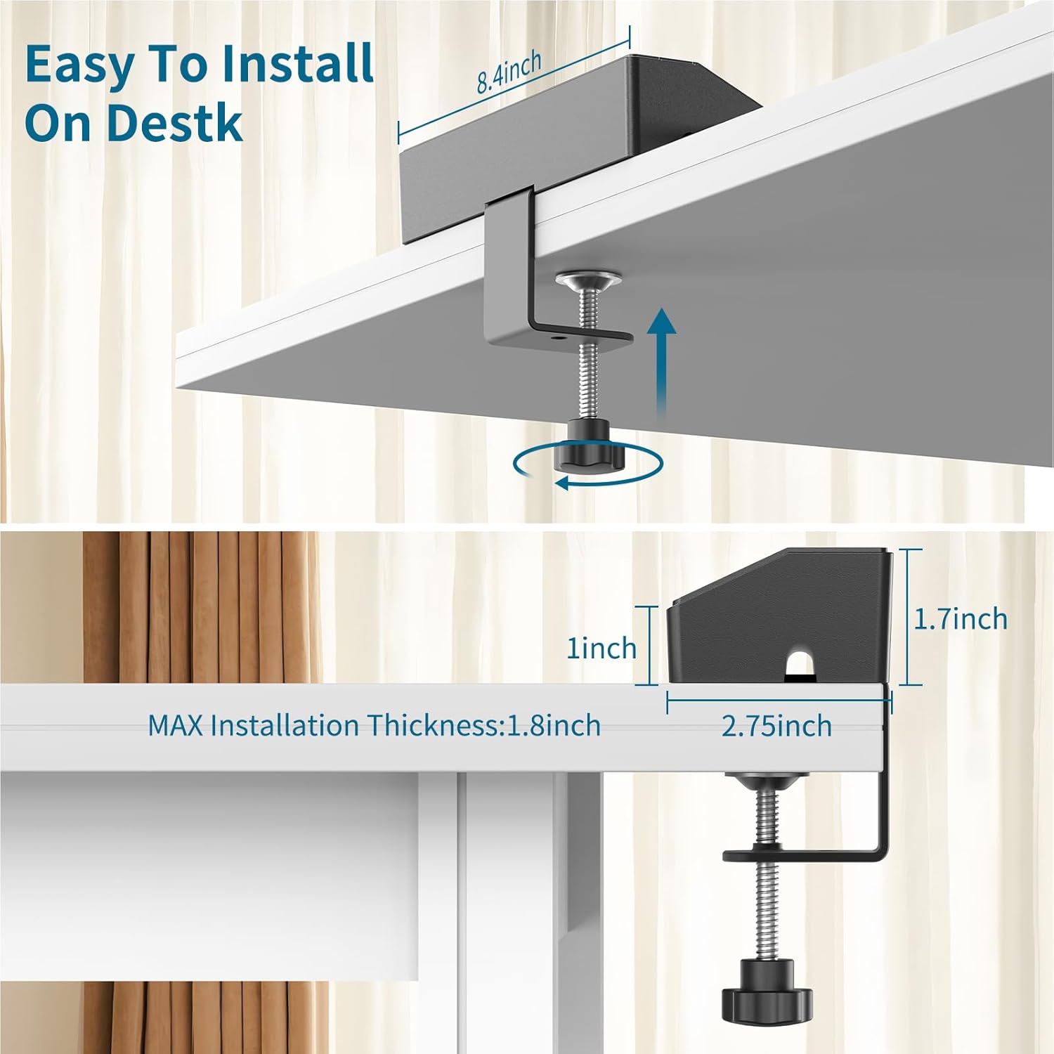 - 【Easy to Install Power Surge Desk Mount】- Desktop surge protector power strip with USB ports is very easy to mount, you don't need to drill holes or purchase any additional tools, just fix the clamp to the table, and turn the button at the bottom to complete the installation. (Features a 180-degree swivel clip that fits desks up to 1.8 inches thick.)