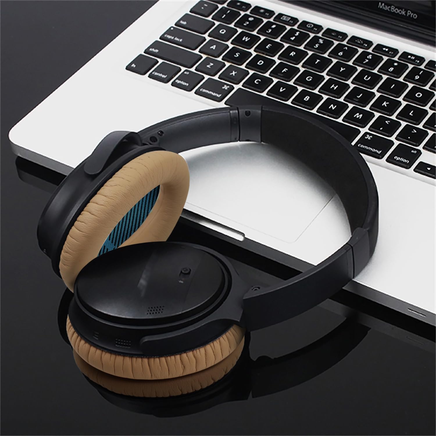 Replacement Ear Pads for Bose QuietComfort 15(qc15/QC15), Headphone Ear Covers, High Density Memory Cotton, Soft Leather, Adaptive Noise Isolation Headphones Pads Cushions-Khaki