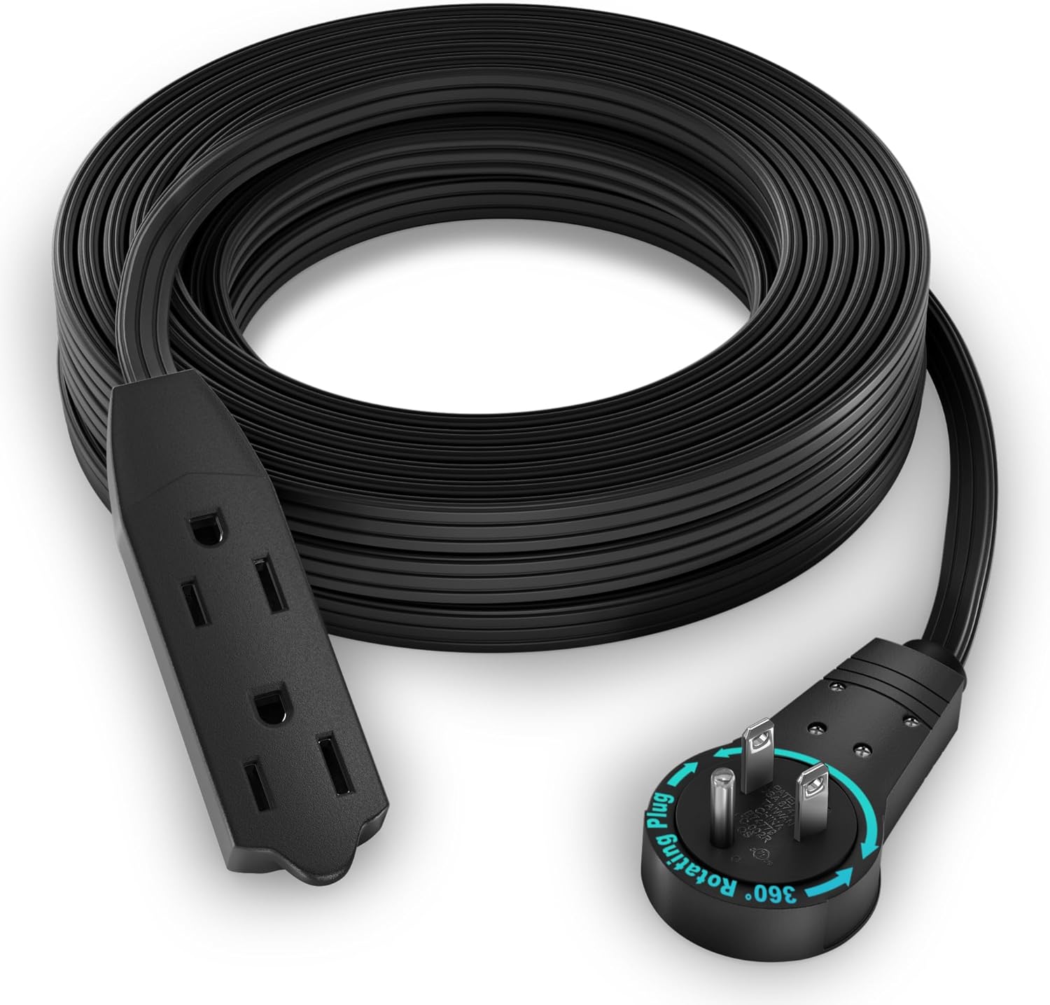- 360° ROTATING PLUG: The Maximm extension cord is top quality featuring a 360° degree rotating flat supply plug with 3 female outlet connectors for additional power.