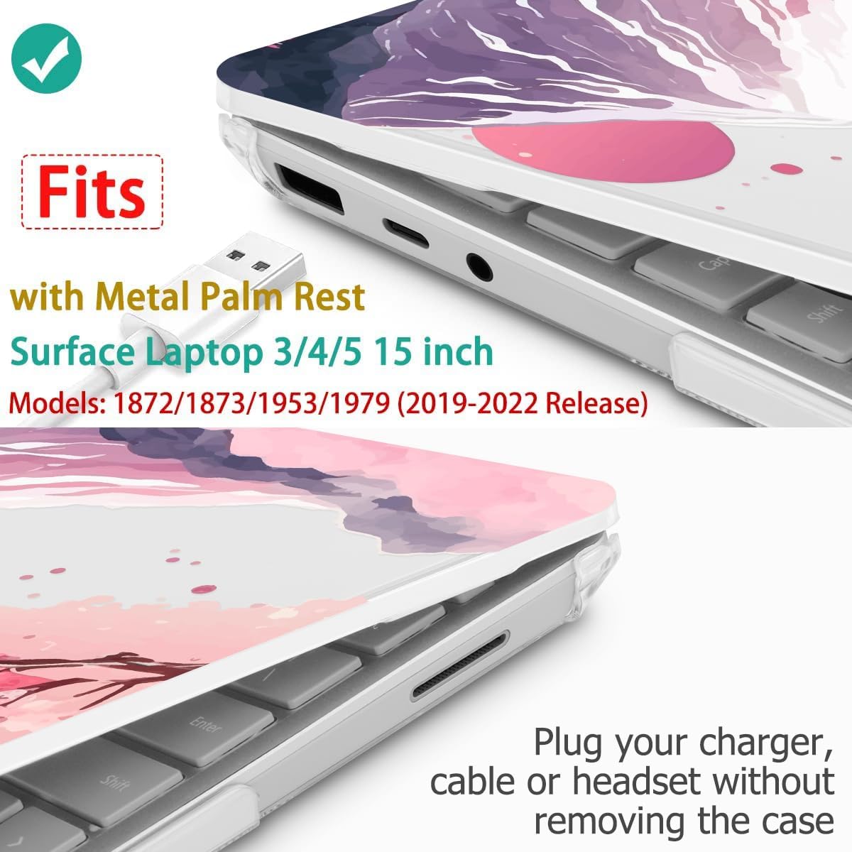 - Compatible with:- Only Fit For Microsoft Surface laptop 15 inch Case with Liquid Retina display and Touch ID (2022/2021/2020) Model: 1979/1953/1872/1873 the case is not compatible with any other Microsoft Surface models. Please kindly CHECK the model number at the bottom of your laptop before purchase