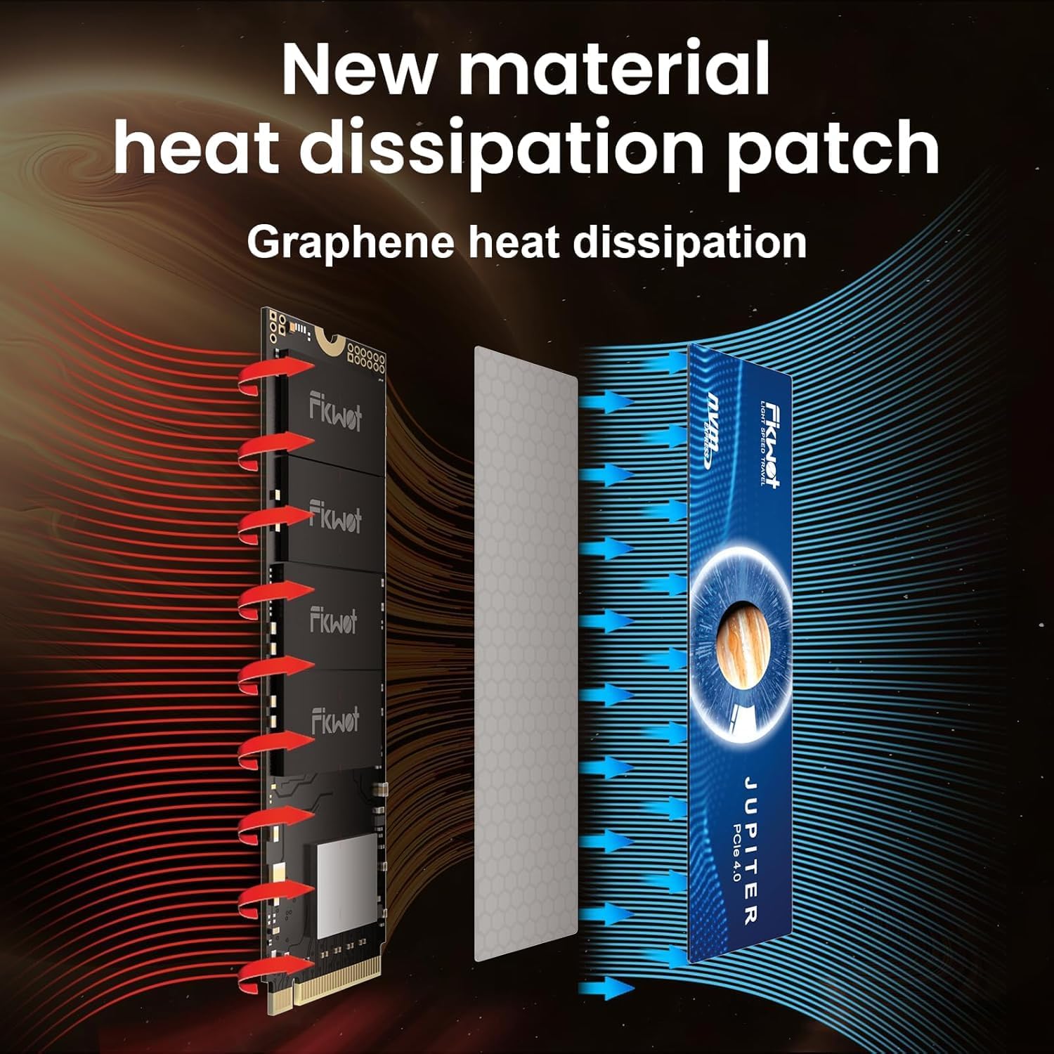 - 【EXCELLENT PERFORMANCE】Fikwot FX660 M.2 NVMe SSD is equipped with a graphene heat dissipation sticker, The heat dissipation performance is enhanced without increasing the volume,which can effectively reduce the temperature of the internal solid state drive and protect the hardware from the risk of overheating damage. Efficient heat dissipation ensures that even under high load conditions, the read rate can still approach peak values.