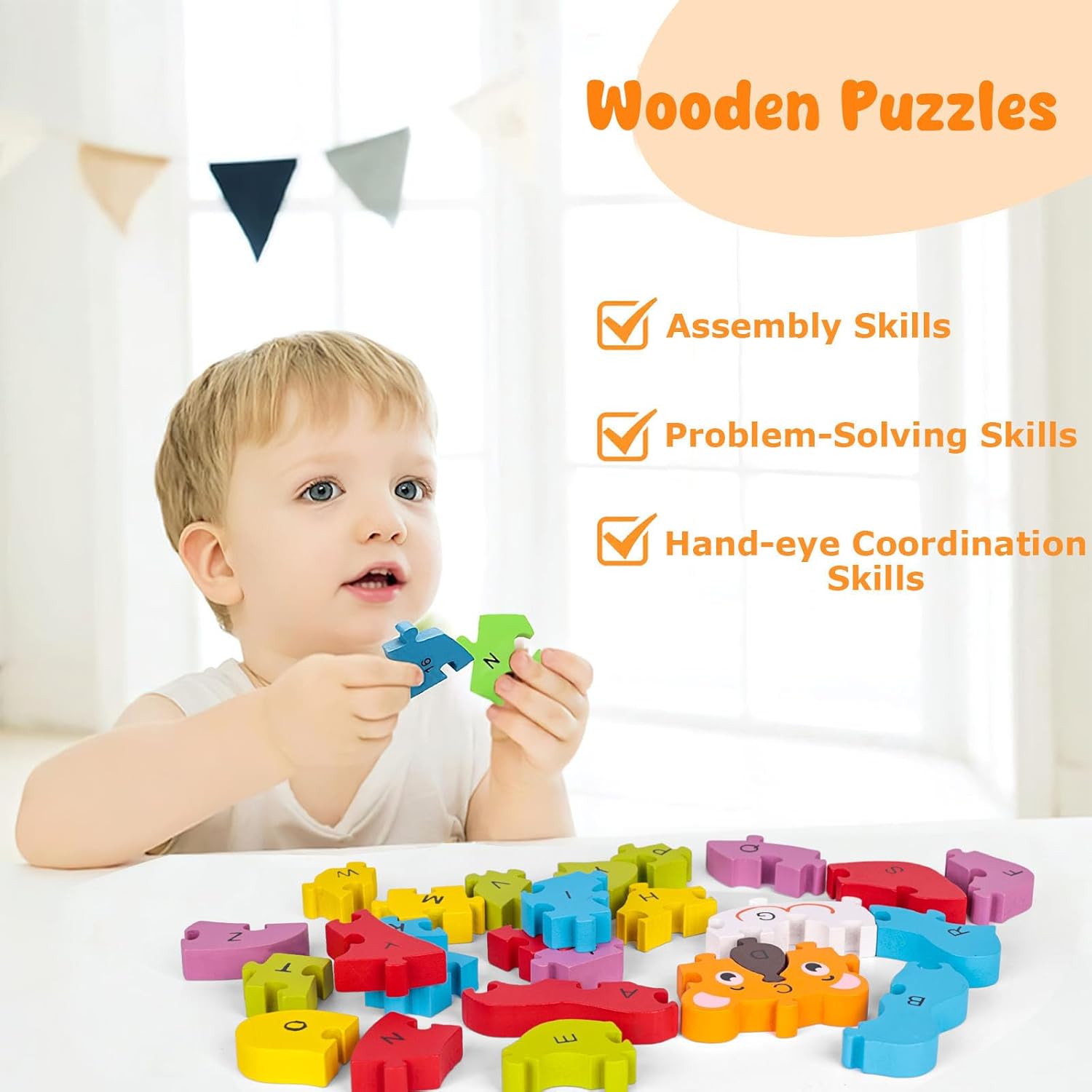 - Explore and Learn - Our toddler wooden puzzle offers double-sided fun with English letters A to Z on one side and numbers 1 to 26 on the other. Each wooden block is carefully painted, enhancing its appeal and educational value. These special blocks are designed to enhance your child's cognitive skills, hand-eye coordination, patience, and memory, all while making learning letters and numbers an enjoyable experience.