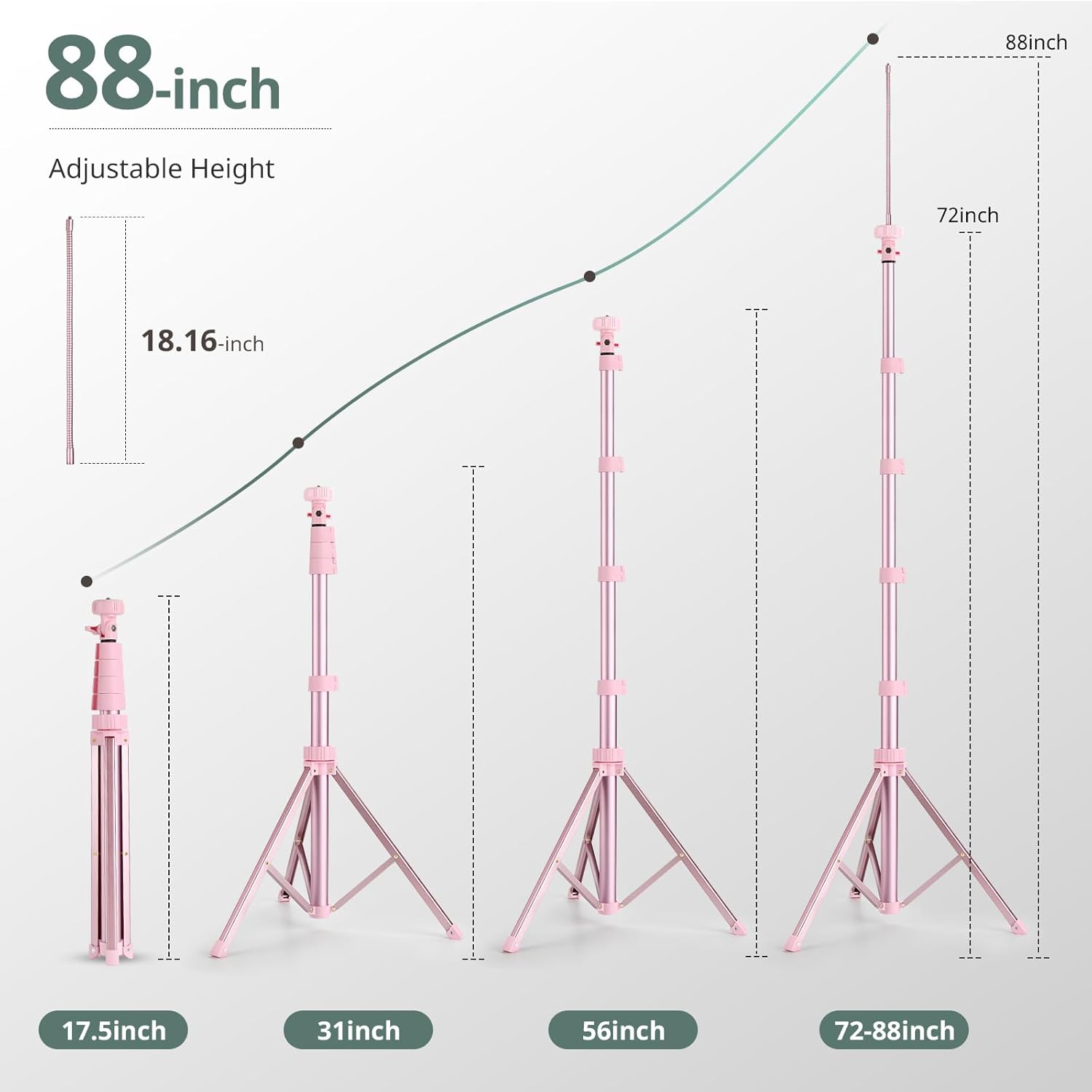 SENSYNE 88" Phone Tripod & Selfie Stick, Extendable Cell Phone Tripod Stand with Wireless Remote and Phone Holder, Pink