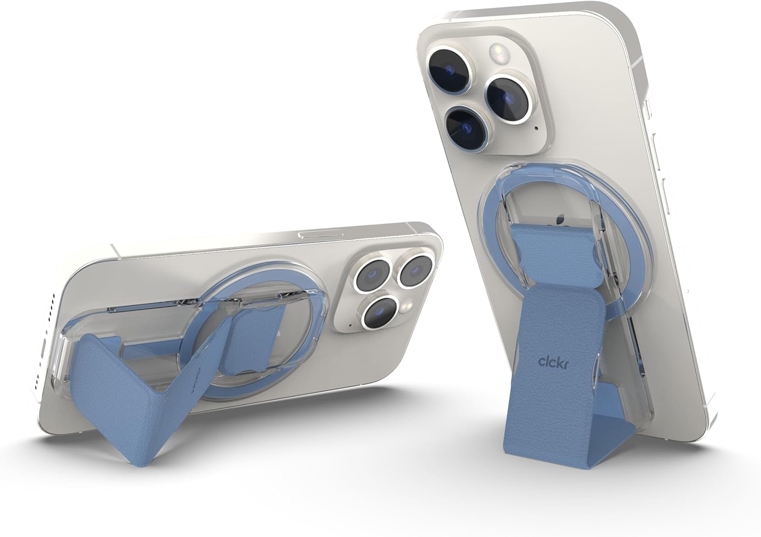 CLCKR for MagSafe Phone Grip for MagSafe Kickstand Compatible with Mag Safe Finger Loop, 3-in1 Phone Ring Holder Strap for Mag Safe iPhone 16/15/14/13/12 Series, Galaxy S25/S24/S23/S22, Pixel - Blue