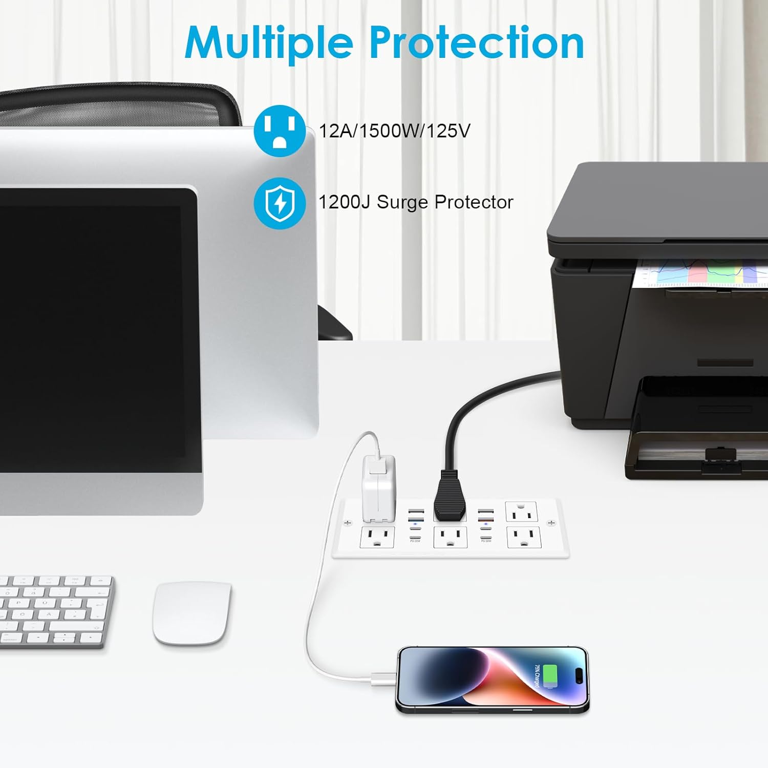 - Furniture Outlets with Fast USB Charging: Max 30W: 9V/3A; 12V/2.5A; 15V/2A; 20V/1.5A. Max 20W: 5V/3A, 9V/2.22A, 12V/1.66A. AC Output: 12A/125V/1500W.