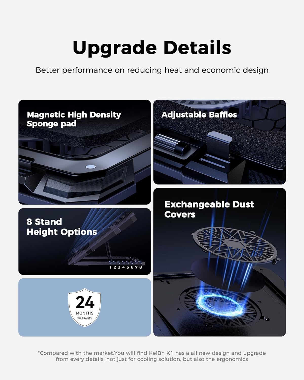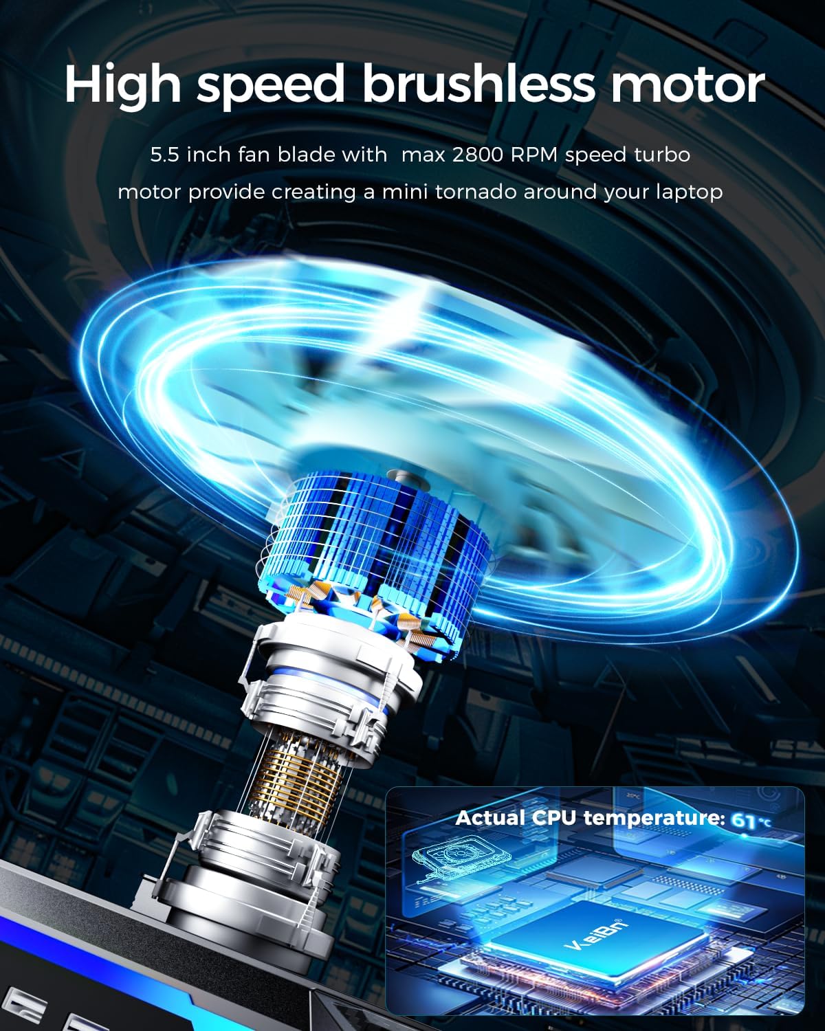KeiBn Gaming Laptop Cooling Pad, Laptop Cooling Stand with 5.5inch External Cooling Fan, Rapid Cooling Laptop 15.6-19.3inch, Infinitely Variable Speed, 8 Height Stands, 4 USB Ports, Blue