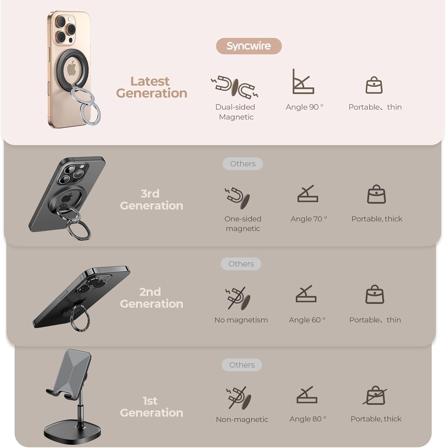 SYNCWIRE for MagSafe Ring Holder, Magnetic Phone Ring Holder Magnet Cell Phone Grip Finger Ring Kickstand Compatible with iPhone 16 15 14 13 12 Pro Max fits MagSafe Accessories