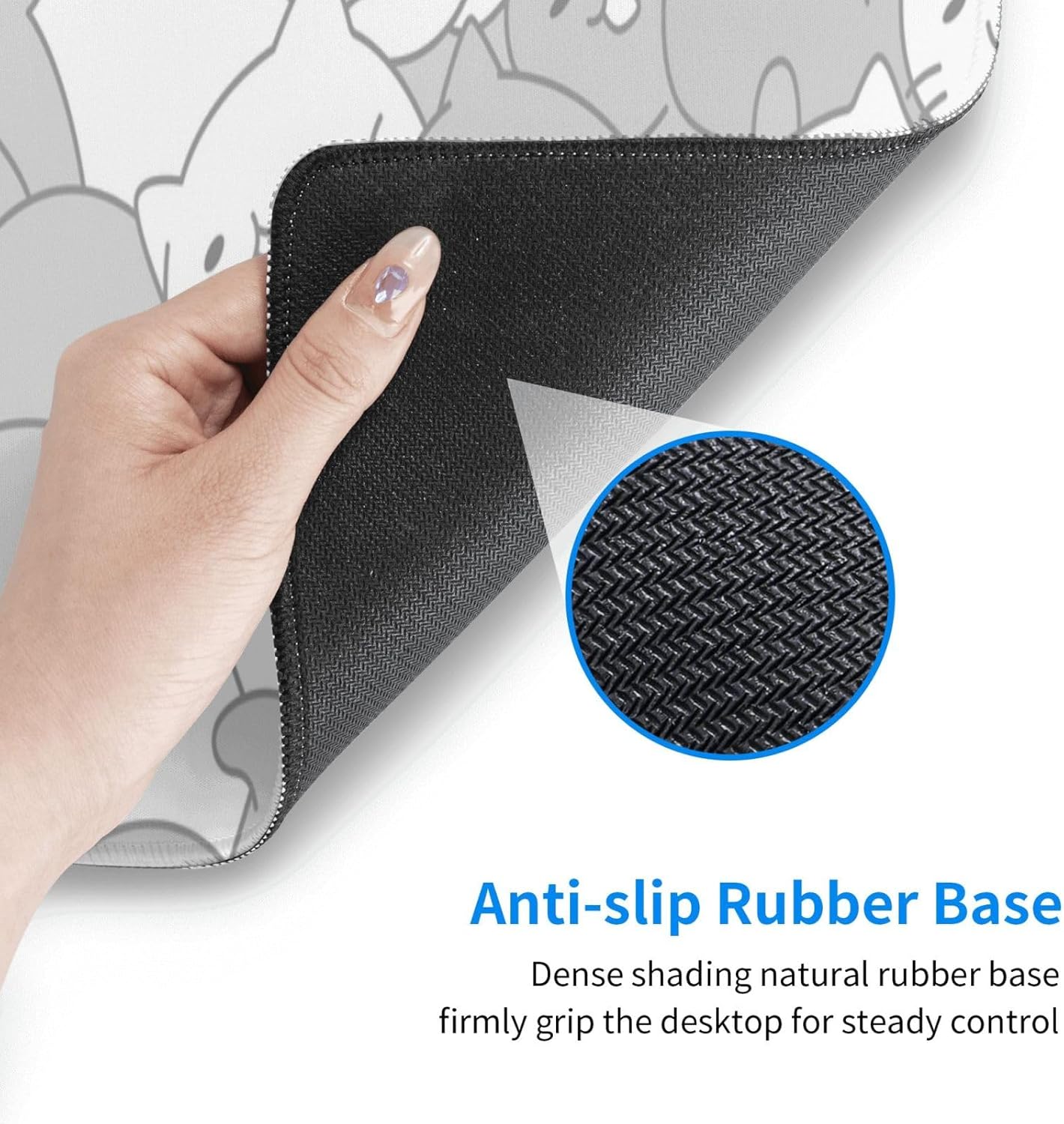 White Kawaii Cats E-Sport Mouse Pad Large Desk Mat Non-Slip Rubber Base Stitched Edge Keyboard Mouse Pad for Office Home E-Sport Computer Laptop, 31.5×11.8 Inches
