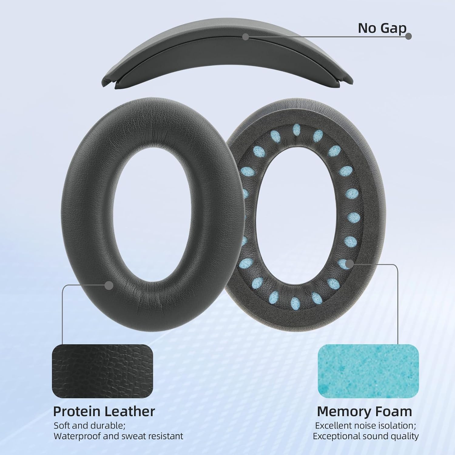 - Premium Materials: Protein leather ear cushions are typically durable, resistant to wear and easy to clean. Inner memory foam provides a softer and more comfortable feel, reducing pressure and discomfort during long listening sessions.