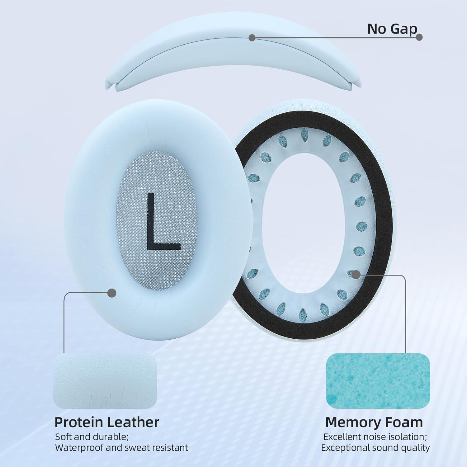 Earpads and Headband Cover Ear Muffs for Bose QC35 QC45 Headphones Accessories with Protein Leather& Memory Foam (Sky Blue)