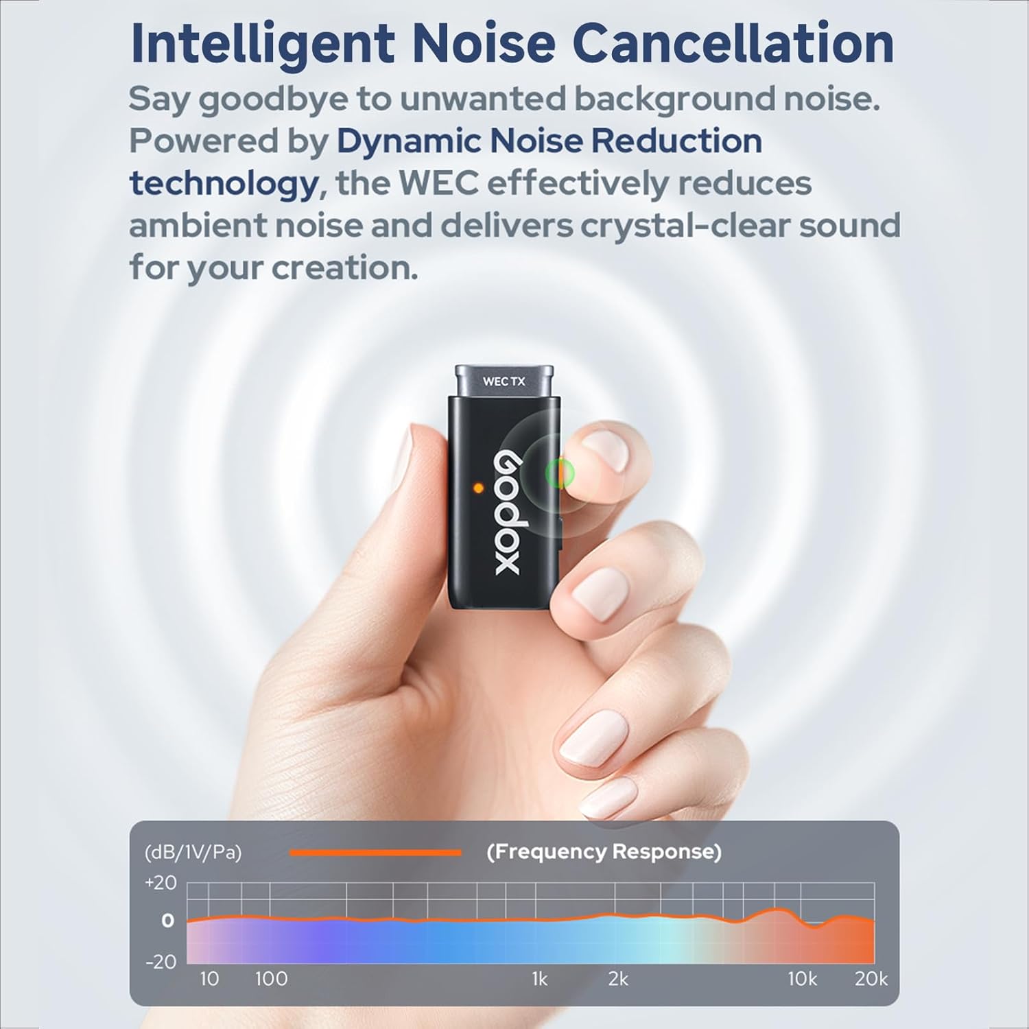 - 【Intelligent Noise Reduction】 - GODOX Wireless Lavalier Microphones features a cutting-edge DSP noise cancellation chip, which provides effective environmental noise cancellation, even in windy outdoor or noisy commercial streets, it can provide clear sound.