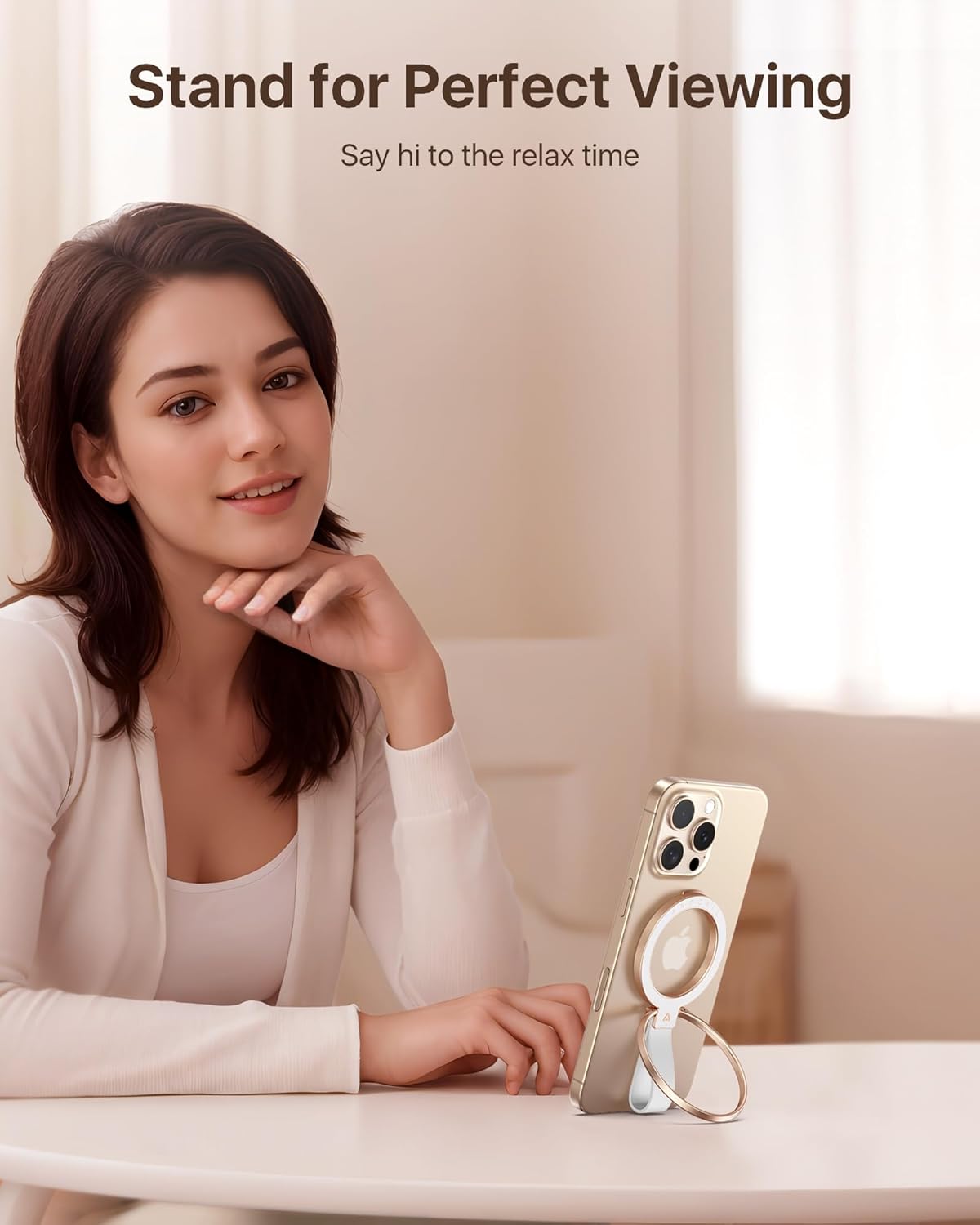 - Wide Compatibility·for All Phones: This MagSafe holder grip can directly snap onto iPhone 16, iPhone 16 Pro, iPhone 16 Pro Max, iPhone 16 Plus,iPhone 15, 15 Plus,15 Pro,15 Pro Max, iPhone 14, 14 Plus,14 Pro,14 Pro Max, 13, 13 Pro, 13 Pro Max, iPhone 12, or MagSafe magnetic protective cases, as well as Samsung Galaxy S10, S9, S8, S7, S6, Note 6, 5, LG, Sony, Nexus, Google Pixel, and other smartphones. (The package includes 2 metal rings, using the metal ring will enhance the magnet's strength)