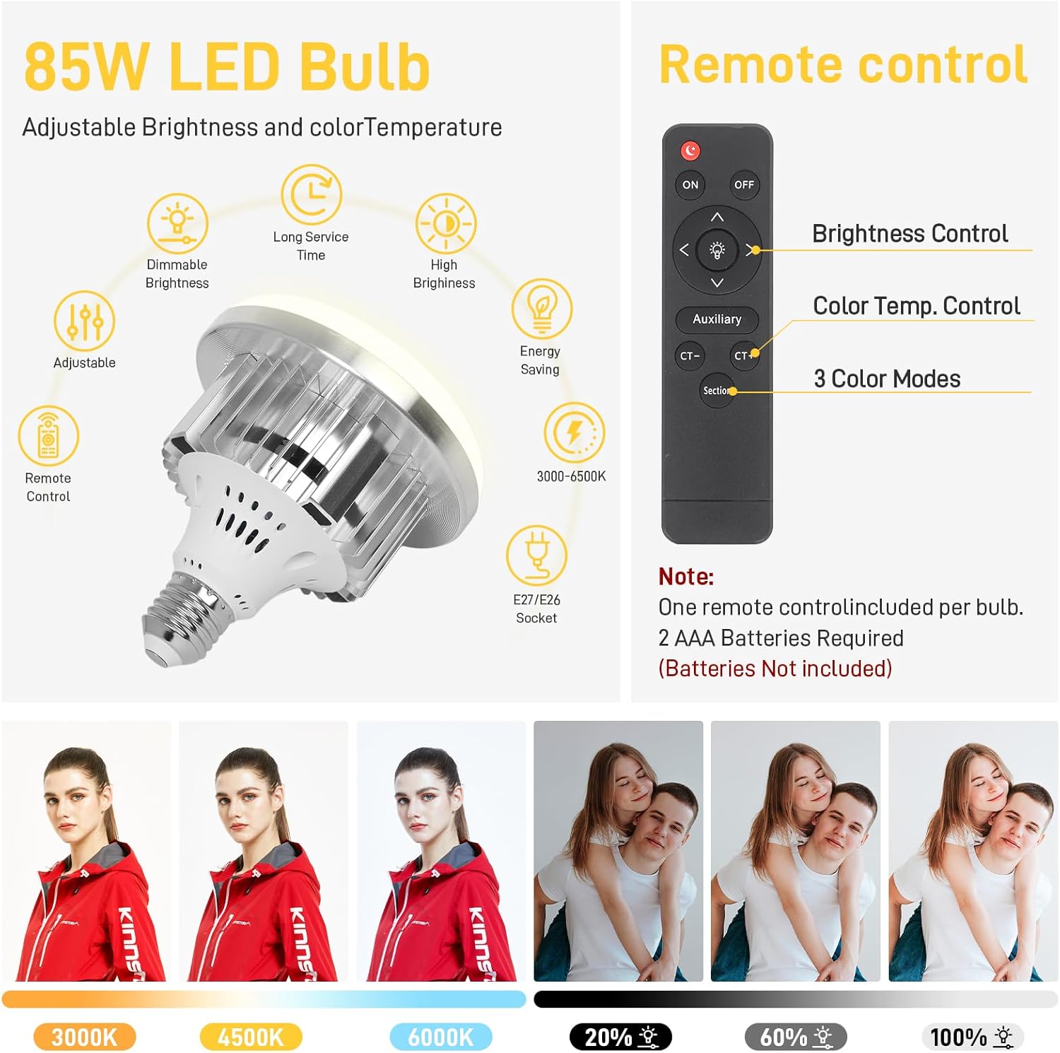 - The photography lighting kit with Backdrops includes almost everything you need. Photo studio photography equipment.Includes:1 x 8.5ft*10ft(2.4m*3m) background stand; 2 x 33" white parasols; 2 x softboxes; 2 x 45W bulbs; 2 x 85W dimmable LED bulbs; 3 x 5.9ft*9.2ft(1.8*2.8m) polyester fabric photography backdrops; 4 x Fish Mouth Clips; 1 x Carrying Bag; 2 x Sand Bags