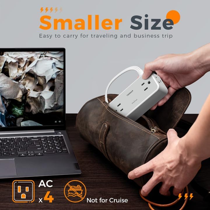 - Wide Spaced Power Strip: With the dimension of 4.6*1.97*1.46in, compact design flat outlet can fit 4 big plugs together without blocking each other; Clean up all kinds of messy cords without taking up space in your home; More convenient to use all kinds of devices in places with limited outlets