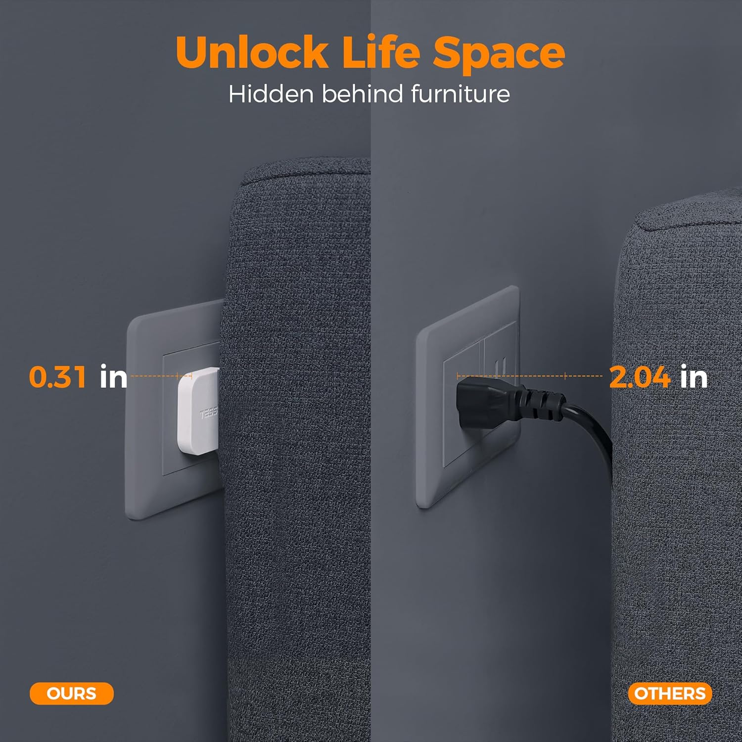 - Ultra Thin Flat Plug: With only 0.31 in ultra thin flat head design, flat plug power strip 5 ft can easily fit in tight spots and hide behind sofa, bed, nightstand or other furniture, sitting flush against the wall, making the house looked very clean and tidy