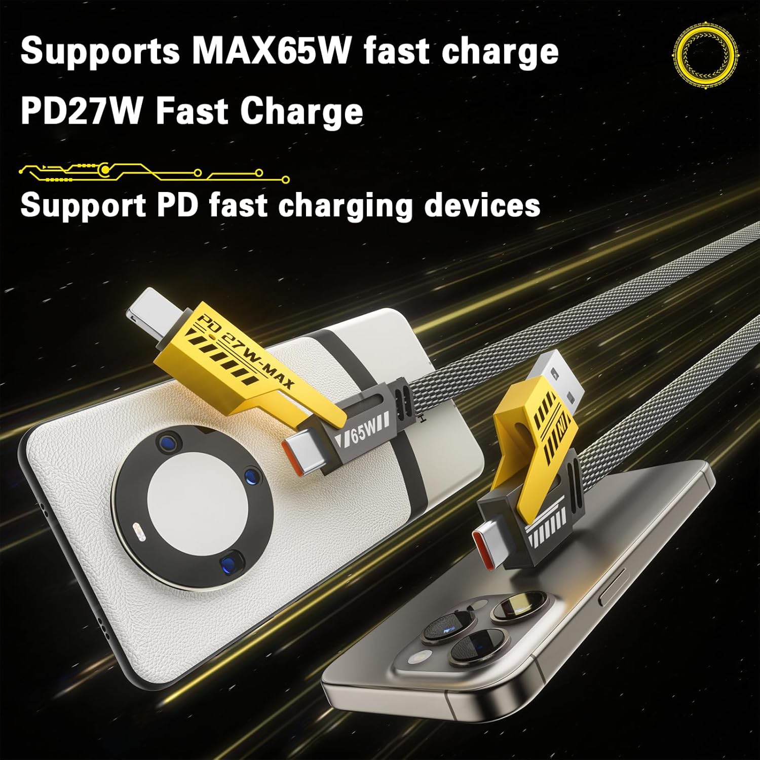 - ✅【Quality Materials】: The 4 in 1 USB C cable is made of flat braided nylon fiber, which is more flexible, durable, and tangle-free than traditional cables. It is also anti-winding, which can effectively prevent the cable from tangling and knotting, and save you a lot of time and effort.