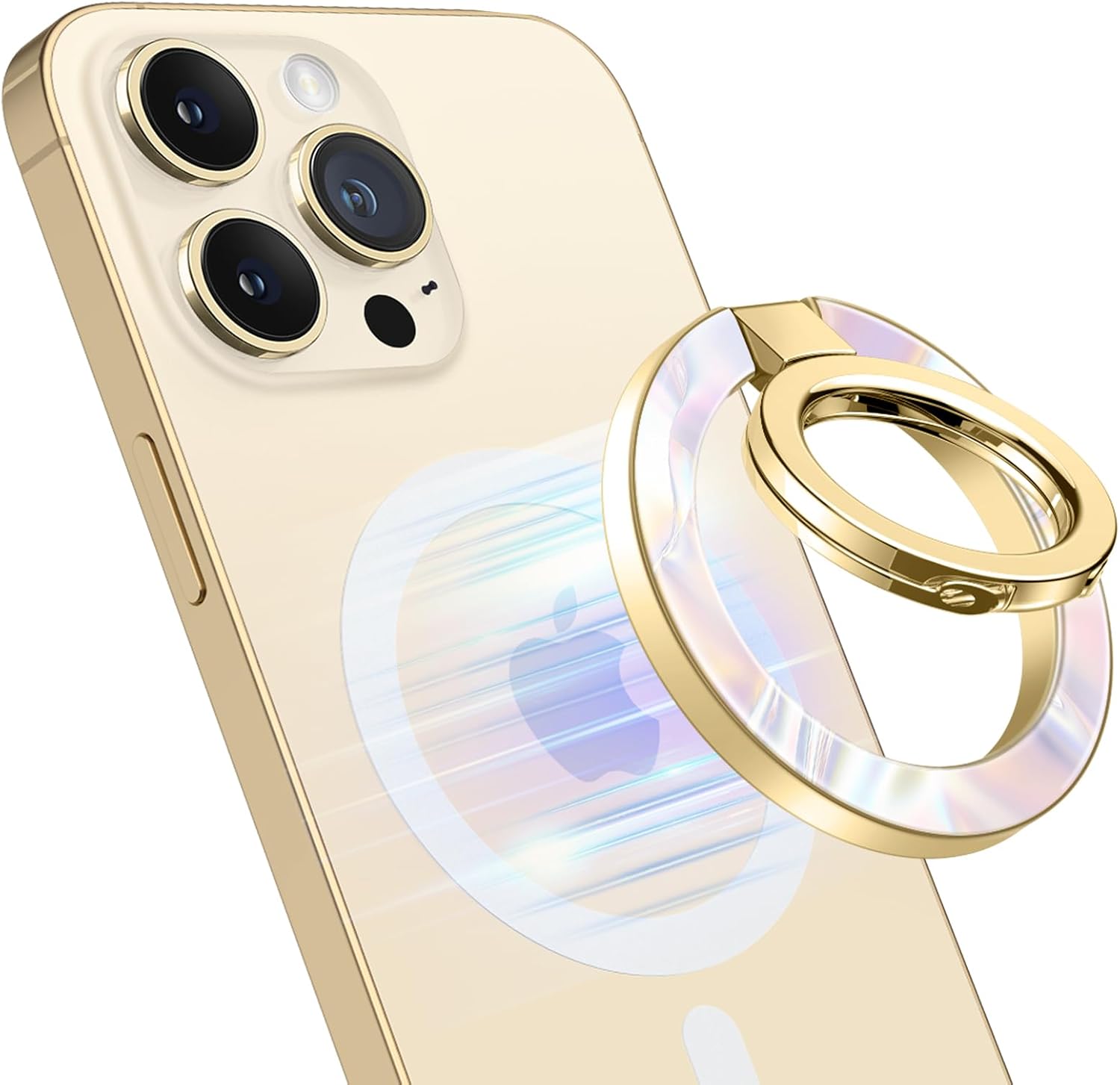 - [Wide Compatibility] The magnetic phone grip is compatible with iPhone 16/15/14/13/12 series and compatible with MagSafe Case. Also works with other phones (for S24 series) or non-Mag Safe-compatible cases when assembled with the metal ring we provide. (Not compatible with phone cases having uneven surfaces, such as leather cases.) Note: No phone case included.
