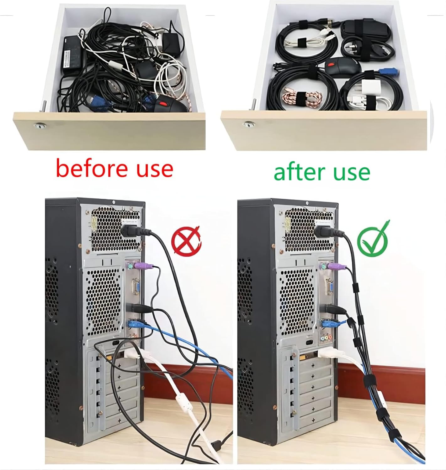 - 🌲MULTI-FUNCTION:This self gripping cable ties can be used in many places. When your computer cables are very messy, you can use it to organize the computer cables. Similarly, it can also be used in the study, office, living room.It can also be widely used in the storage of data cables, power cables, network cables, etc., as well as the bundling of gardening trees, flowers, and potted plants, etc. , very practical.