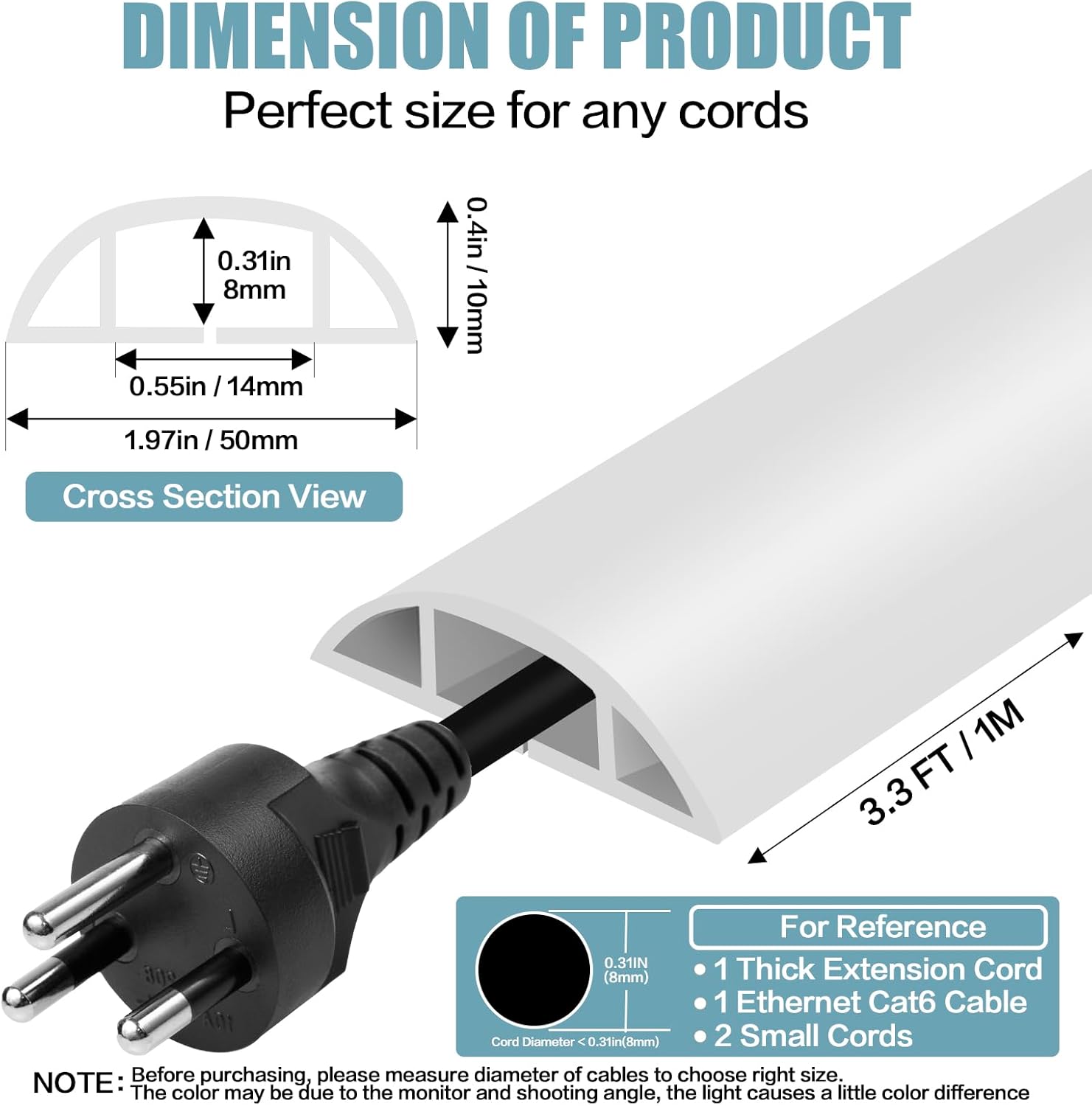 - 【Widely Options】The electric cord covers for floor offers a wide range of colors and lengths to meet the needs of different users for decorative styles, making it better integrated and more flexible in various indoor or outdoor environments. The flexibility and versatility of cord hider floor make them ideal for solving wire routing and safety issues.【NOTE】The color may be due to the monitor and shooting angle, the light causes a little color difference.