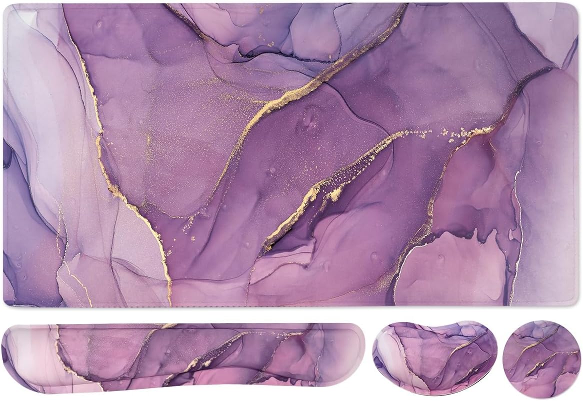 Large Keyboard Mouse Pad Set, Extended Mouse Pad+Keyboard Wrist Rest Support, Memory Foam Ergonomic Easy Typing, 4Pcs (35.4×15.7 in) Desk Pad Set for Home Office Study Game - Purple