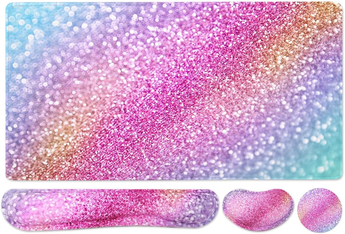 Large Keyboard Mouse Pad Set, Extended Mouse Pad+Keyboard Wrist Rest Support, Memory Foam Ergonomic Easy Typing, 4Pcs (35.4×15.9 in) Desk Pad Set for Home Office Study Game - Colorful