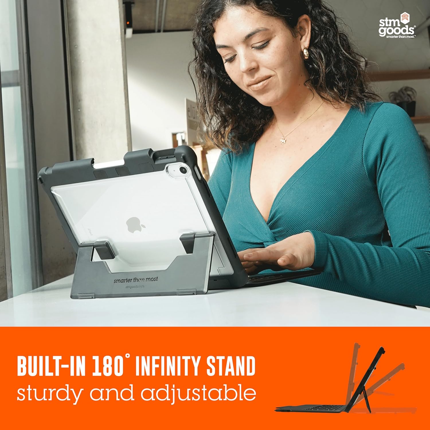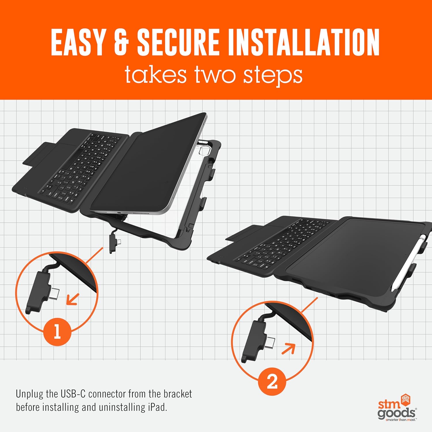 STM Goods Dux Keyboard Trackpad USB-C for iPad 10th, USB-C Connected Keyboard - Rugged, Rubberized Drop Protection - Integrated Trackpad, Storage for Apple Pencil Gen 1 or Logitech Crayon - Black
