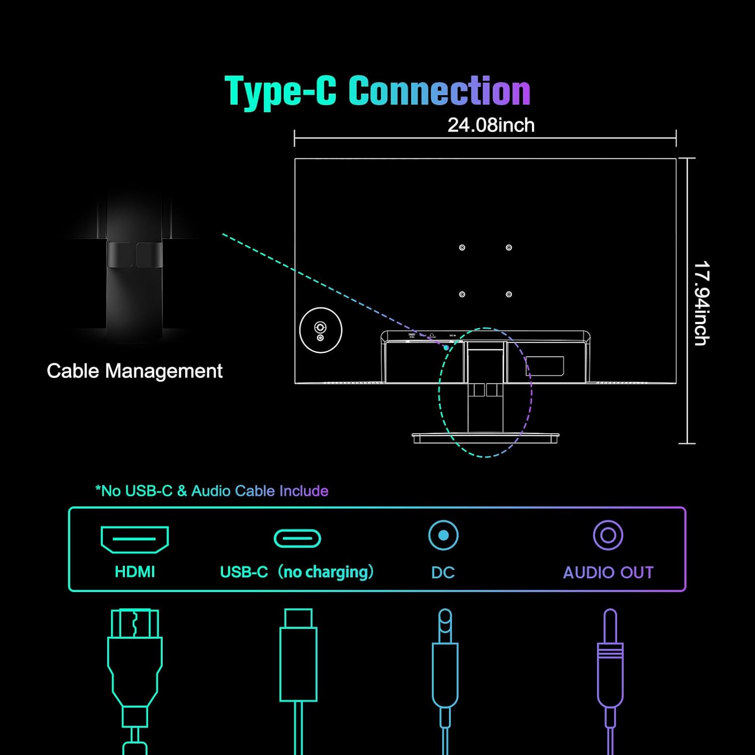 - Ports: HDMI 1.4 (HDMI Cable Included); USB-C 2.5W Port(Only data transmission, no charging)(Connecting the device necessitates a full-featured Type-C cable with video transmission support, not just charging & data.)