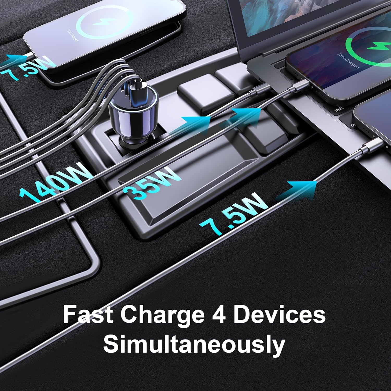 URVNS 240W USB C Car Charger, Super Fast Charging 4-Ports PD3.1 140W/PD3.0 100W PPS 45W QC65W Type-C Car Adapter for MacBook Pro Laptop iPhone 16 15 Max iPad Samsung Galaxy S24/23 Pixel etc