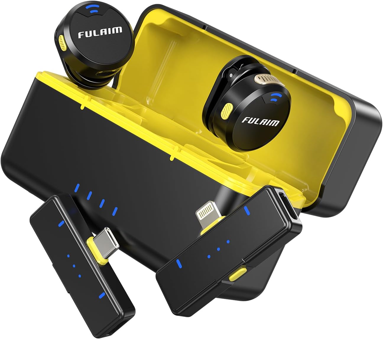 FULAIM X3 Wireless Lavalier Microphone with 32H Charging Case for iPhone/Android/PC, DSP Noise Reduction Mini Lapel Microphone for Video Recording, Vlogging, YouTube, Interview (X3-Case)