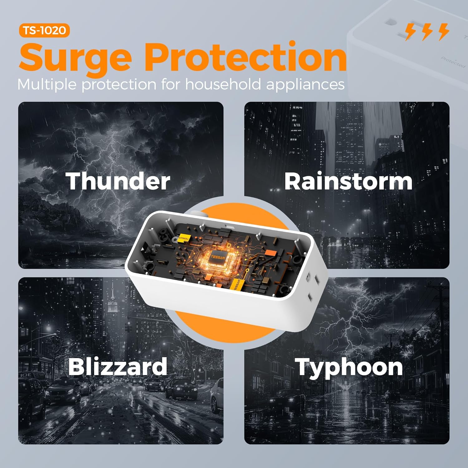 - Power Strips With Surge Protection: Equipped 900J surge protection can protect your home/ office electronics from surges and spikes disturbances, providing you with a safe and reliable charging environment