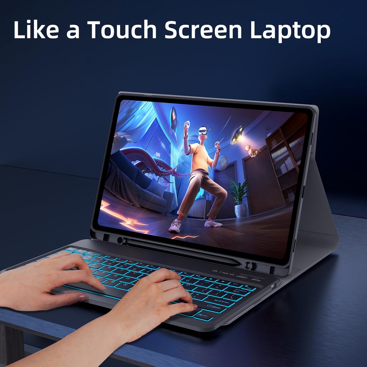 Keyboard Case for Samsung Galaxy Tab S10+ Plus / S9 FE+ Plus / S9+ Plus 12.4 Inch,7 Colors Backlit Bluetooth Keyboard, Detachable Wireless Magnetic Keyboard with S Pen Holder, Black
