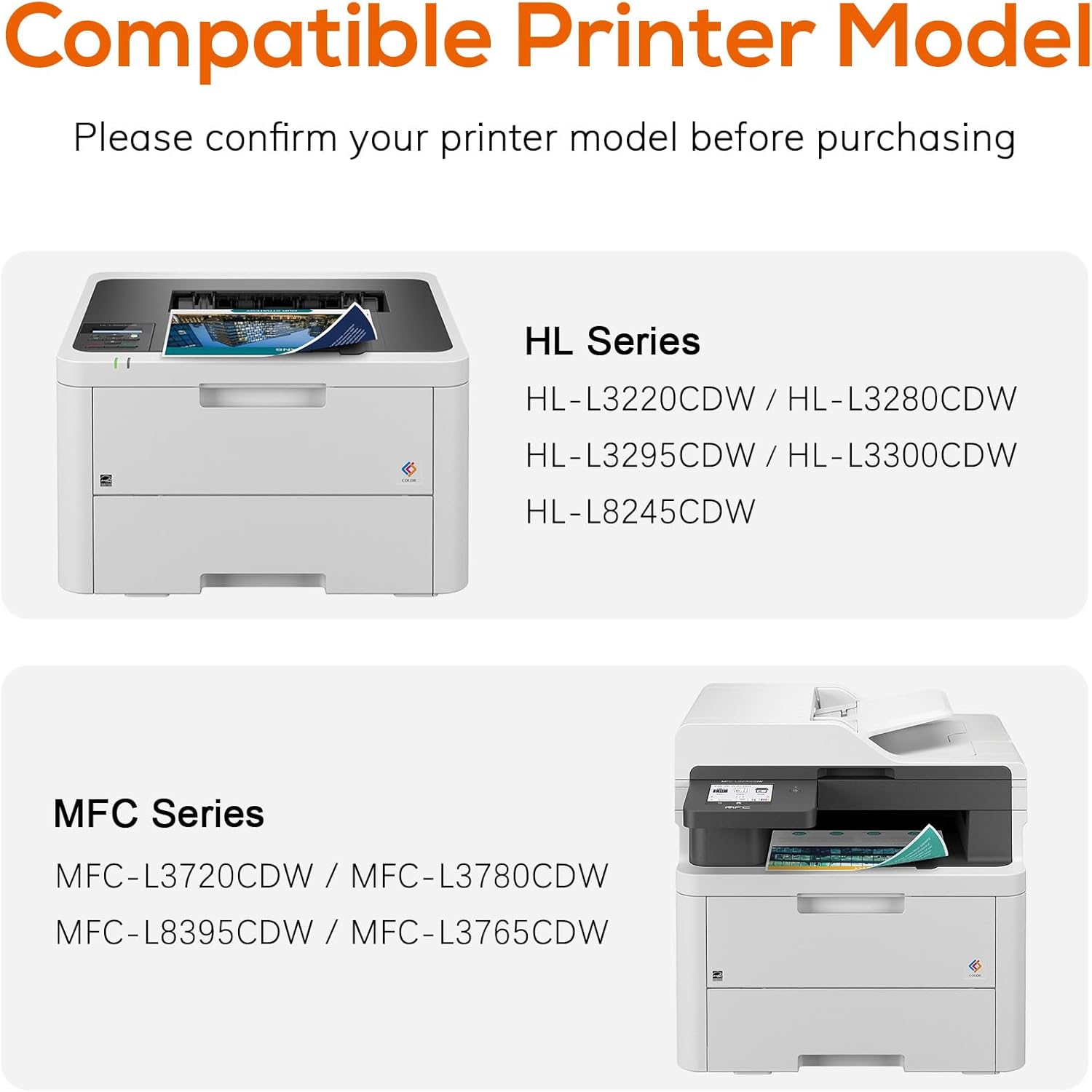 - Compatible Printers: The Jeostarky TN229XL toner cartridges are compatible with brother HL-L3280CDW, HL-L3220CDW, HL-L3300CDW, HL-L3295CDW, HL-L8245CDW, MFC-L3780CDW, MFC-L3720CDW, MFC-L3765CDW, and MFC-L8395CDW