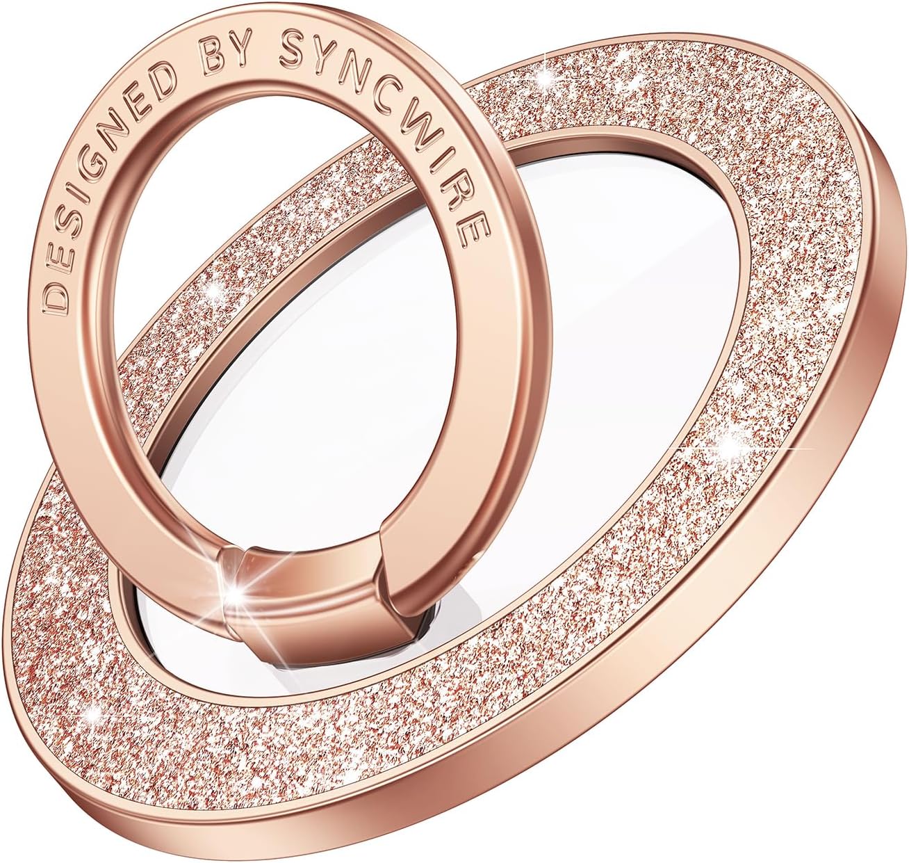 Syncwire Magnetic Phone Grip for MagSafe, Magnetic Sparkle Phone Ring Holder, Rotatable Kickstand Cell Phone Stand Removable MagSafe Accessories for iPhone 15 Pro Max 14 13 12,Android- Rose Gold