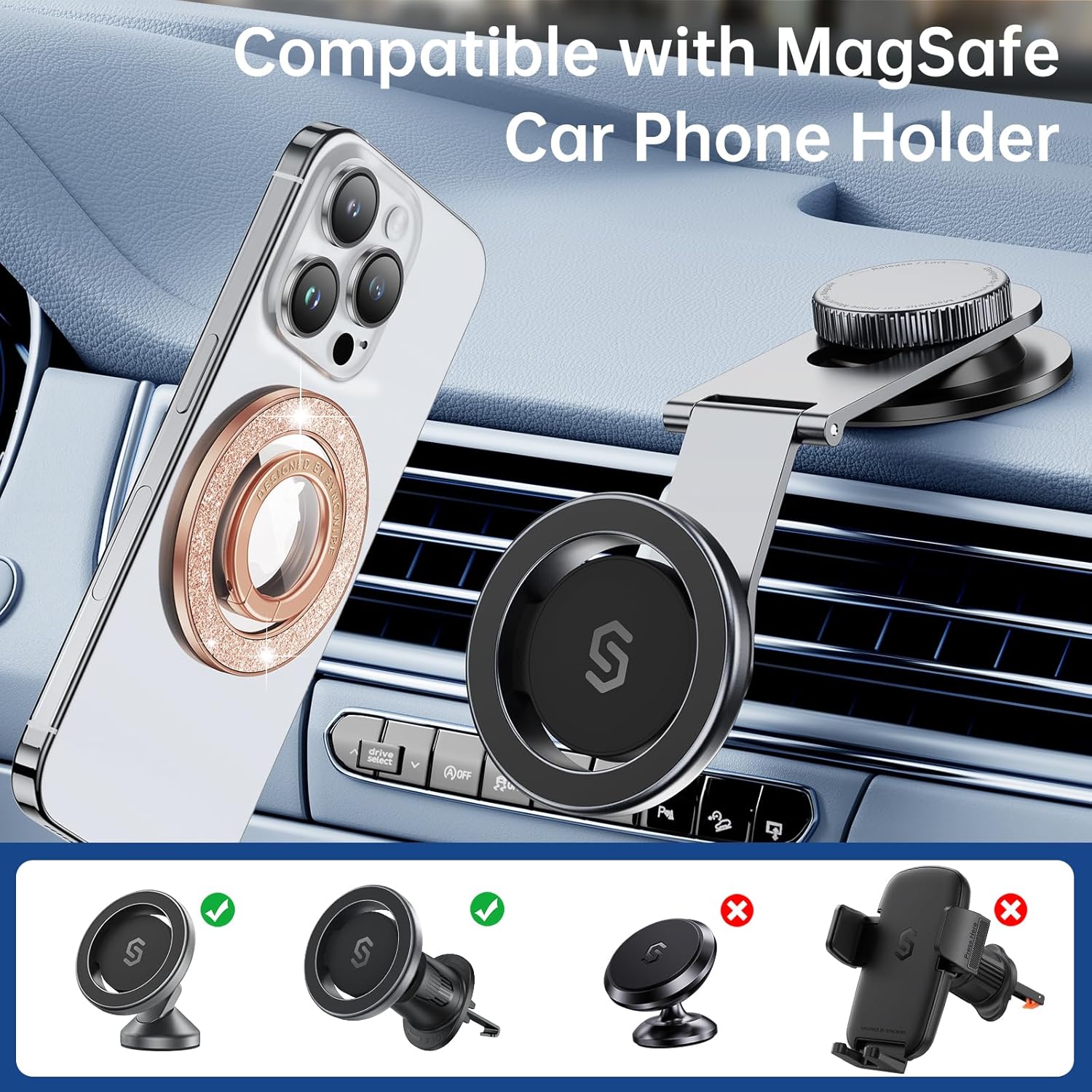- ăWide CompatibilityăThe Sycnwire MagSafe phone ring holder is designed specifically for use with MagSafe devices and certified MagSafe phone cases. The magnetic phone ring grip is also compatible with non-magnetic phones and standard phone cases with thin metal rings (provided) on their backs. Widely compatible with all Apple and Android smartphones, including iPhone 15/14/13/12 Series, iPhone 11/11Pro/X/XS/XS Max/8/7, Samsung GalaxyS23/S22/S21, Google Pixel P8 P7, and more.
