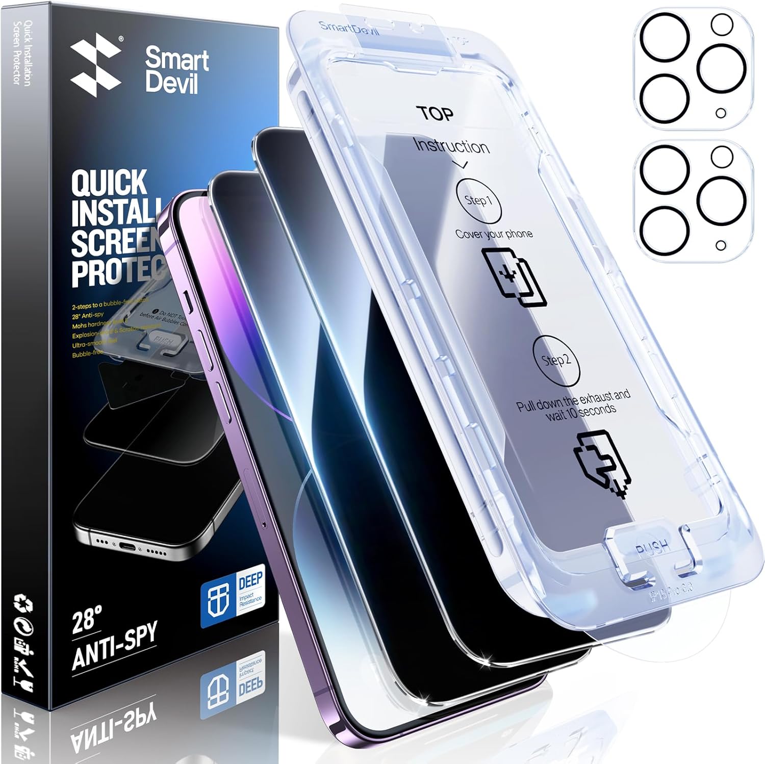 ![SMARTDEVIL 2+2Pack Privacy Screen Protector for iPhone 14 Pro with Camera Lens Protector,Shatterproof Tempered Glass [True 28°Anti Spy] [9H Hardness] [Automatic Dust-Elimination Install][Bubble Free]](http://hey-techs.com/cdn/shop/files/712_Y9Sq0zL._AC_SL1500.jpg?v=1762925401&width=1445)
