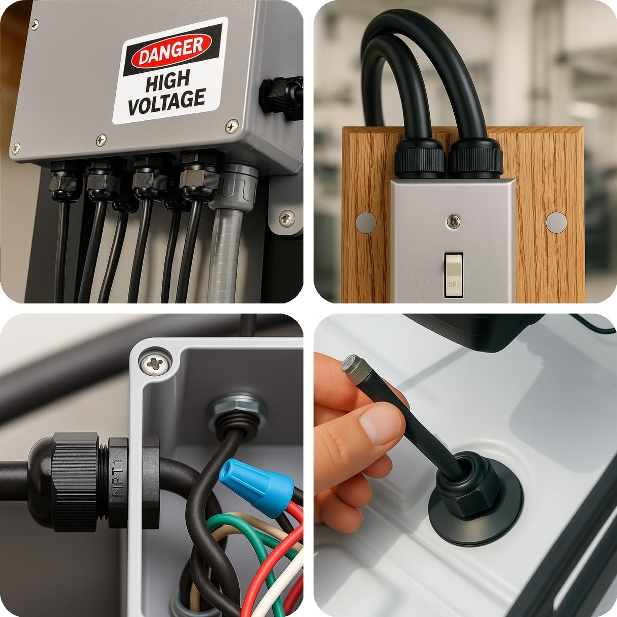 - PROFESSIONAL LOOK — Black nylon cable glands are used by professionals everywhere, including all types of electrical, industrial, and automotive equipment and machinery.