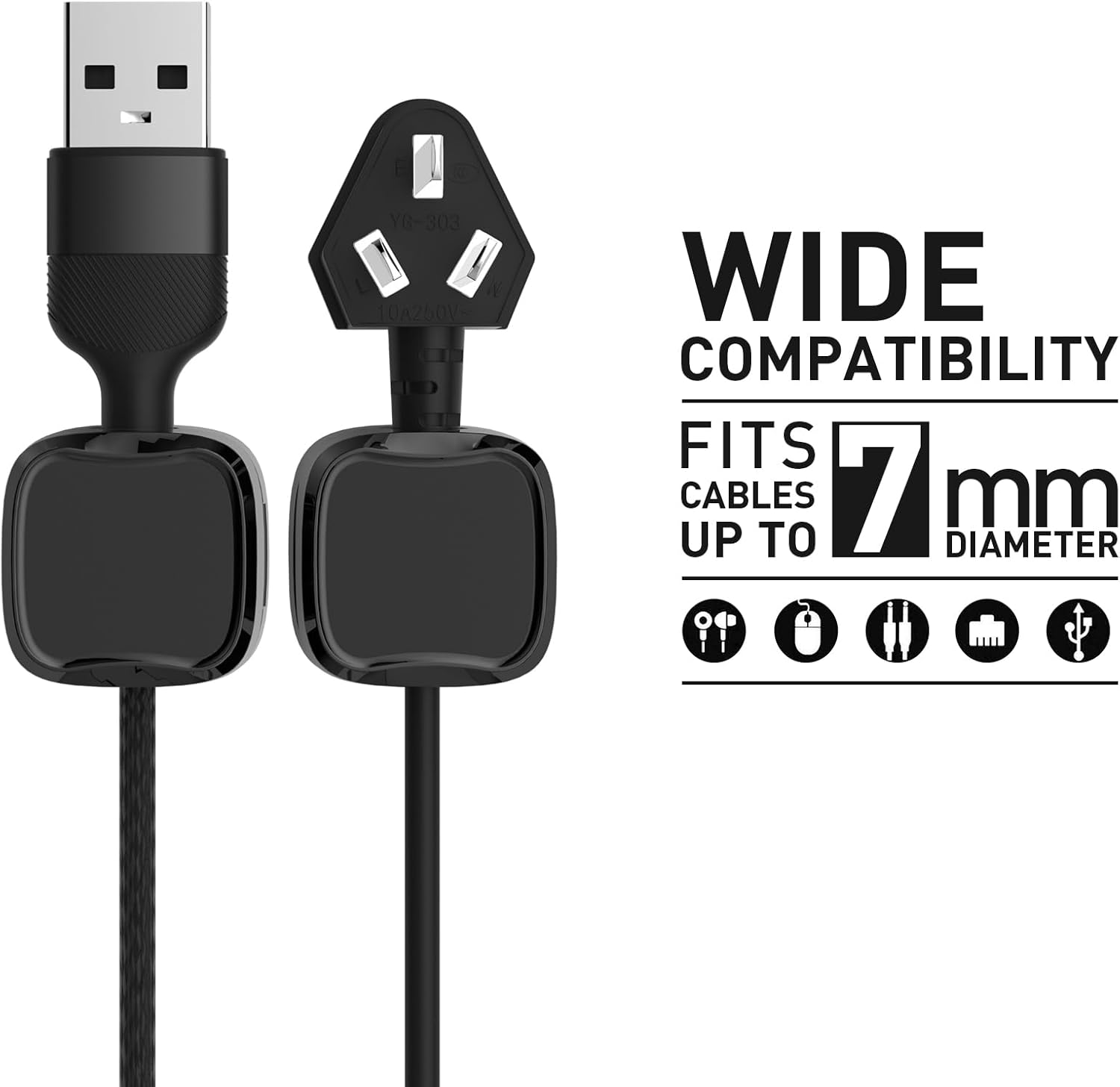 - CABLE MANAGEMENT MADE EASY: Say goodbye to messy desktops and keep everything neat and tidy with the cable clips. A simple answer to your cable management for various scenarios, including office, kitchen, bedroom and car. The sticky pad and magnetic function will keep your cables to stay where they should be!