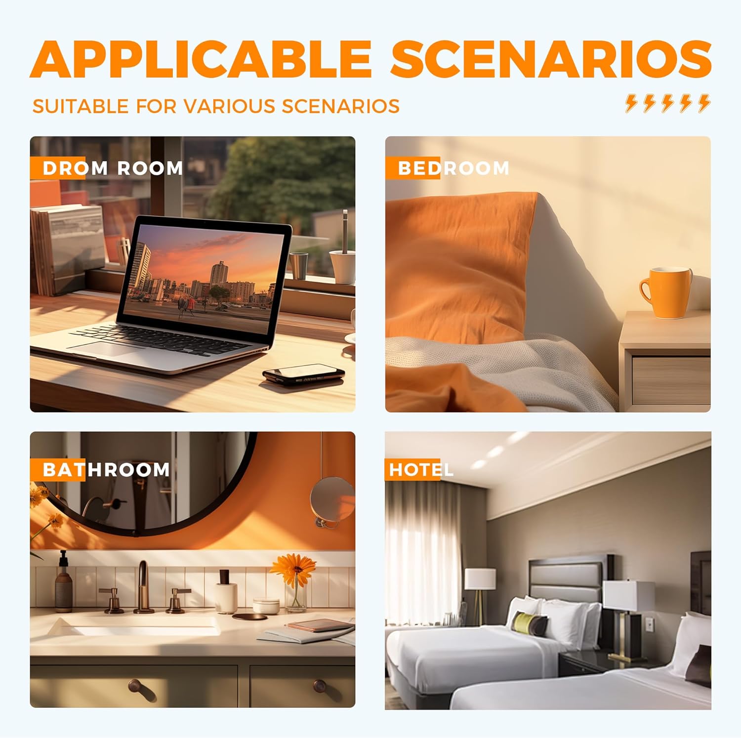 - Suitable for Any Occasions: Flat wall plug adapter can easily fit in tight spots and hide behind sofa, bed, nightstand or other furniture, makes it easier to use various equipment in any place with limited sockets, especially in bathroom, bedroom, living room, kitchen, and college dorm room