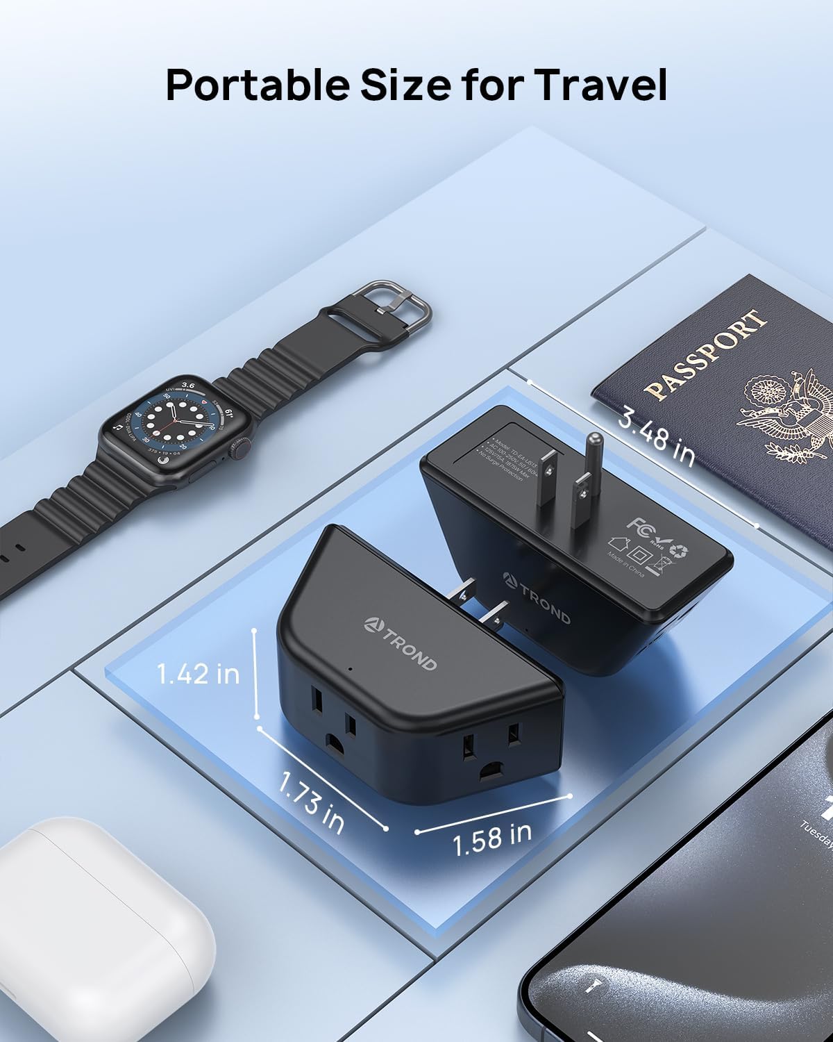 - Compact and Portable: With a compact size of 3.48 x 1.73 x 1.42 inches, this small outlet adapter is perfect for business trips or travel. It saves space and is particularly suitable for tight spots, such as behind couches, furniture, and more