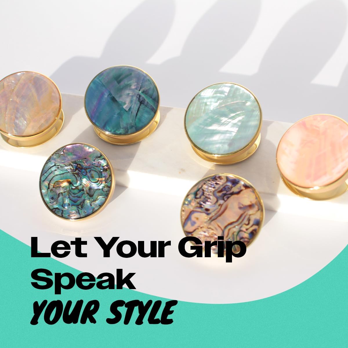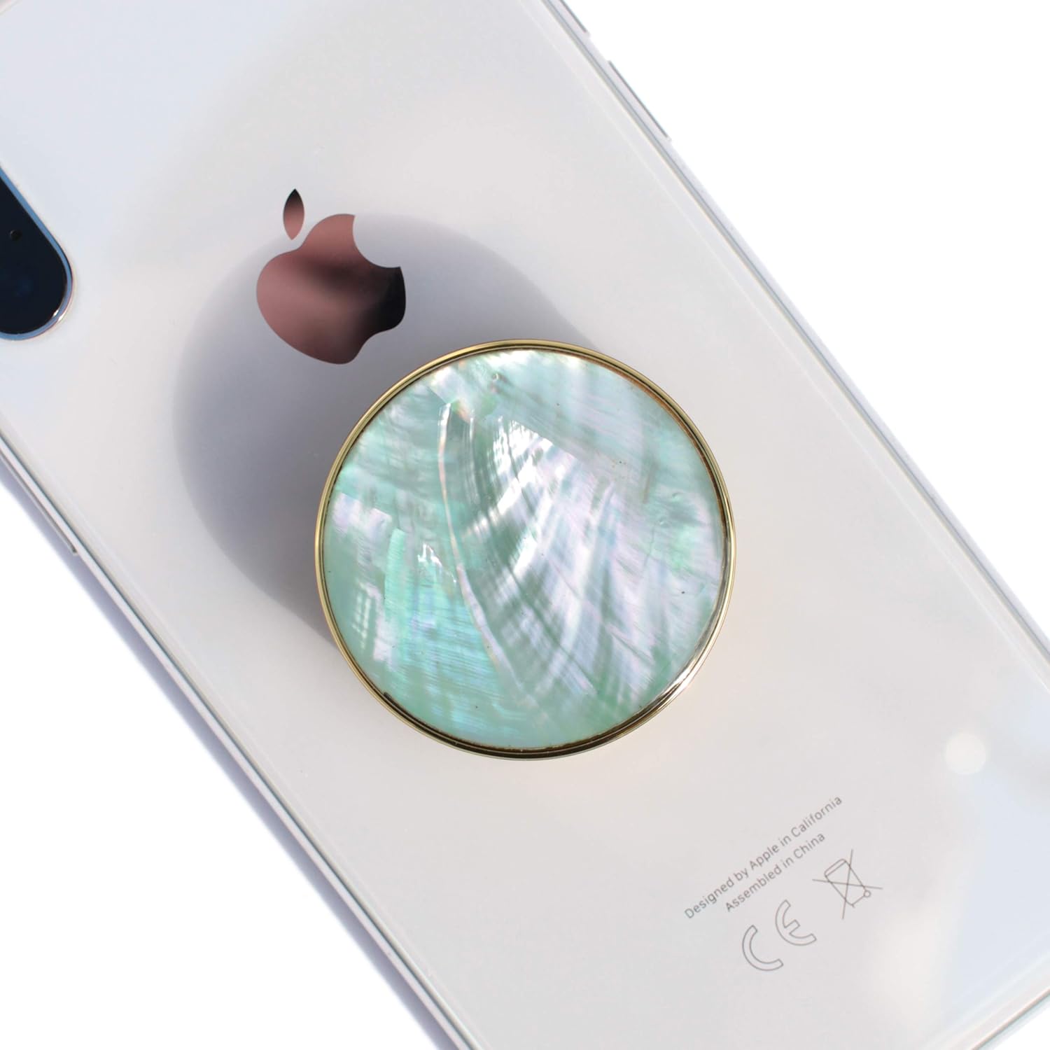 OnTheGrip Cute Natural Seashell Design Round Shape Collapsible Mobile Phone Grip Stand Holder for Smartphone Tablet Cell Phone Accessory (Aqua Blue)